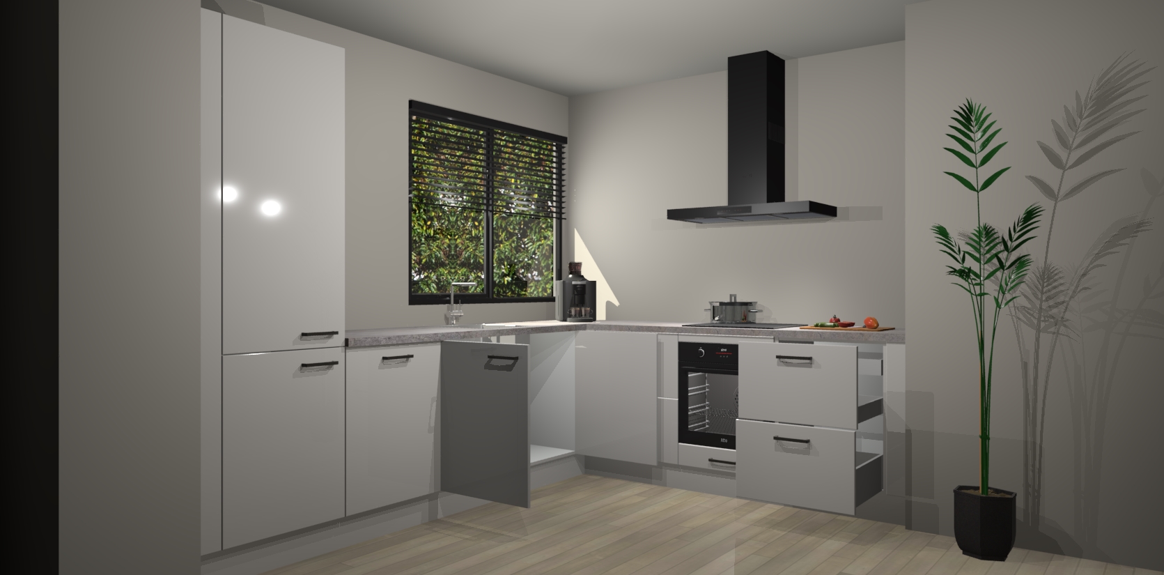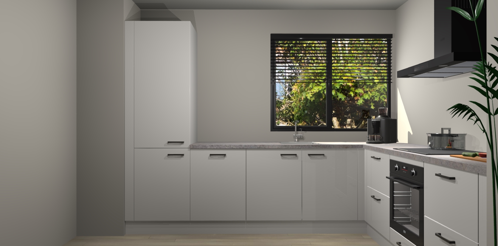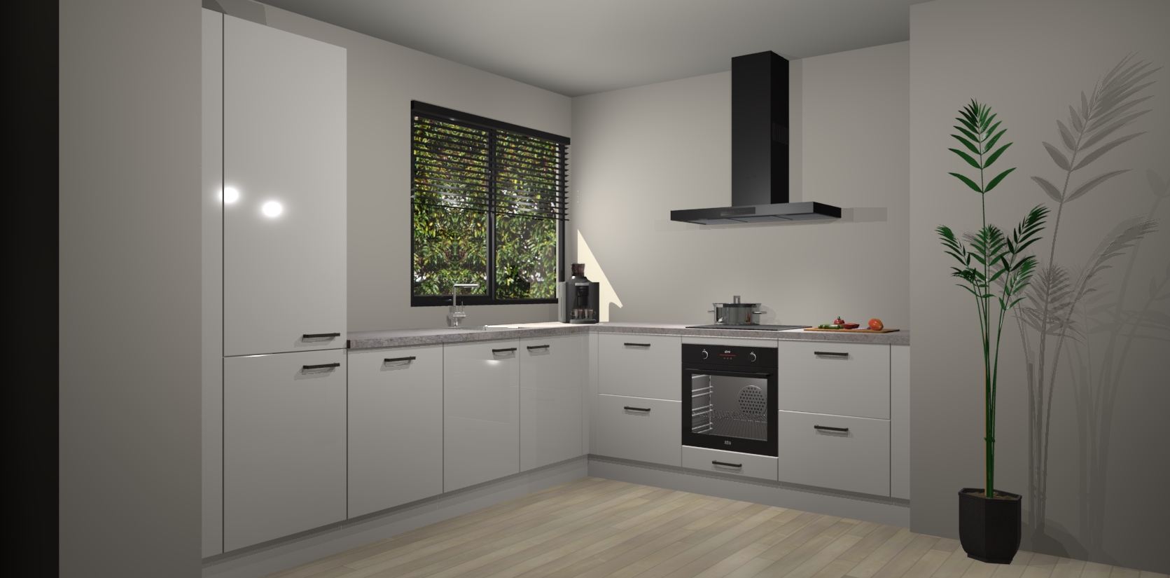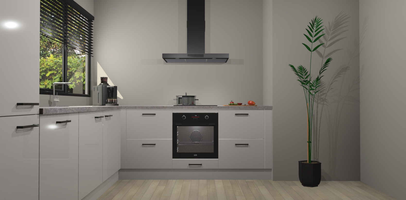 Met een modern, tijdloos design en ruime opslagruimte, zult u zich in no-time thuis voelen in uw nieuwe keuken. Uw leven wordt eenvoudiger met de soft-close deuren die voor het ultieme stille comfort zorgen - geen geluid dat u stoort terwijl u kookt. Ook is de keuken voorzien van 5 ingebouwde apparaten: een oven, inductie kookplaat, afzuigkap, vaatwasser en koelkast. Deze kunnen gemakkelijk na bestelling worden bijgewerkt naar AEG - waardoor uw luxe ervaring compleet is.