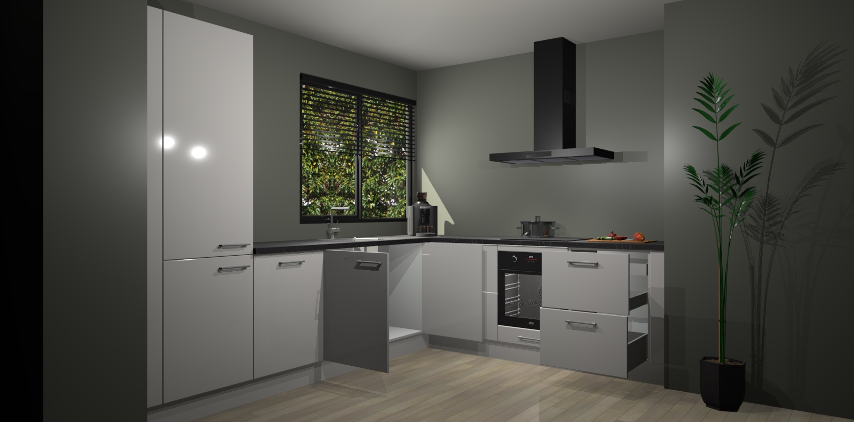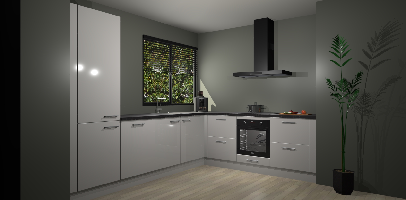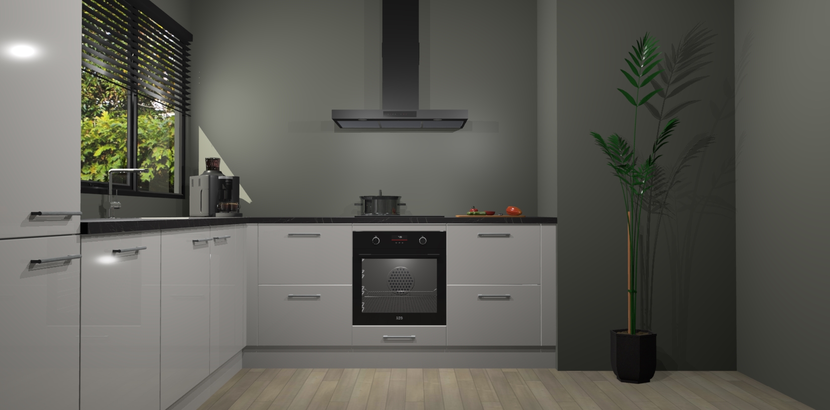 Met een modern, tijdloos design en ruime opslagruimte, zult u zich in no-time thuis voelen in uw nieuwe keuken. Uw leven wordt eenvoudiger met de soft-close deuren die voor het ultieme stille comfort zorgen - geen geluid dat u stoort terwijl u kookt. Ook is de keuken voorzien van 5 ingebouwde apparaten: een oven, inductie kookplaat, afzuigkap, vaatwasser en koelkast. Deze kunnen gemakkelijk na bestelling worden bijgewerkt naar AEG - waardoor uw luxe ervaring compleet is.