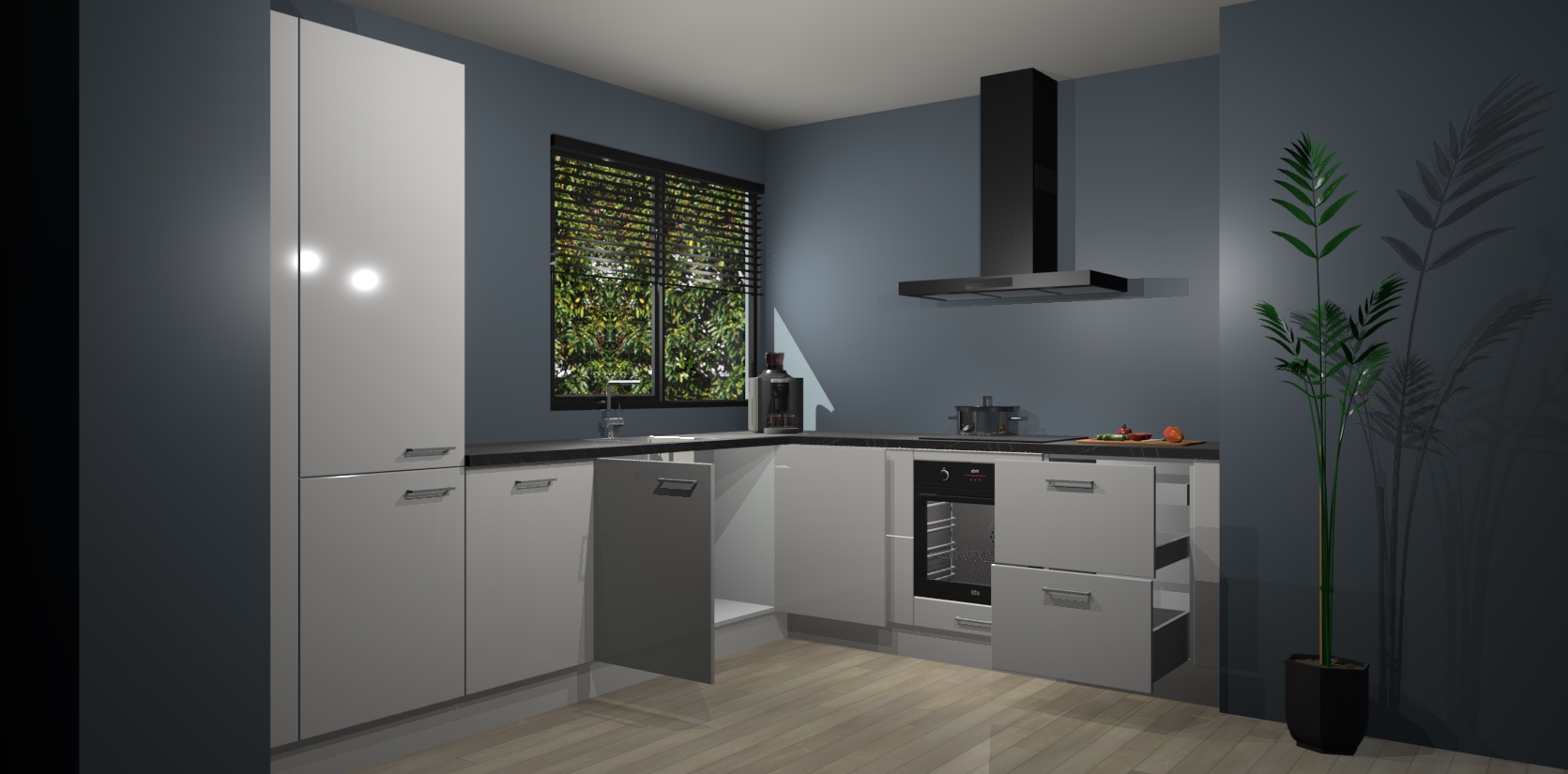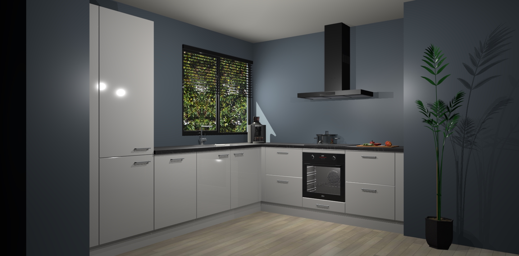 Met een modern, tijdloos design en ruime opslagruimte, zult u zich in no-time thuis voelen in uw nieuwe keuken. Uw leven wordt eenvoudiger met de soft-close deuren die voor het ultieme stille comfort zorgen - geen geluid dat u stoort terwijl u kookt. Ook is de keuken voorzien van 5 ingebouwde apparaten: een oven, inductie kookplaat, afzuigkap, vaatwasser en koelkast. Deze kunnen gemakkelijk na bestelling worden bijgewerkt naar AEG - waardoor uw luxe ervaring compleet is.