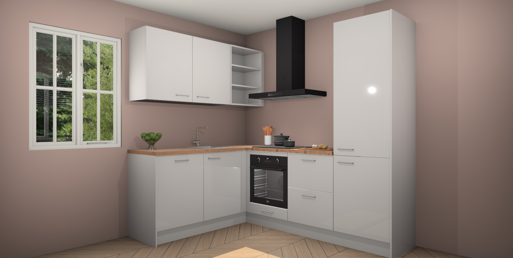 Voor nog meer gemak heeft deze keuken vijf ingebouwde apparaten - oven, inductiekookplaat, afzuigkap, vaatwasser en koelkast. Bovendien hebben alle kasten softclose deuren voor extra comfort bij het sluiten. Dit alles voor een verrassend lage vaste prijs - u vindt nergens anders een betere deal!