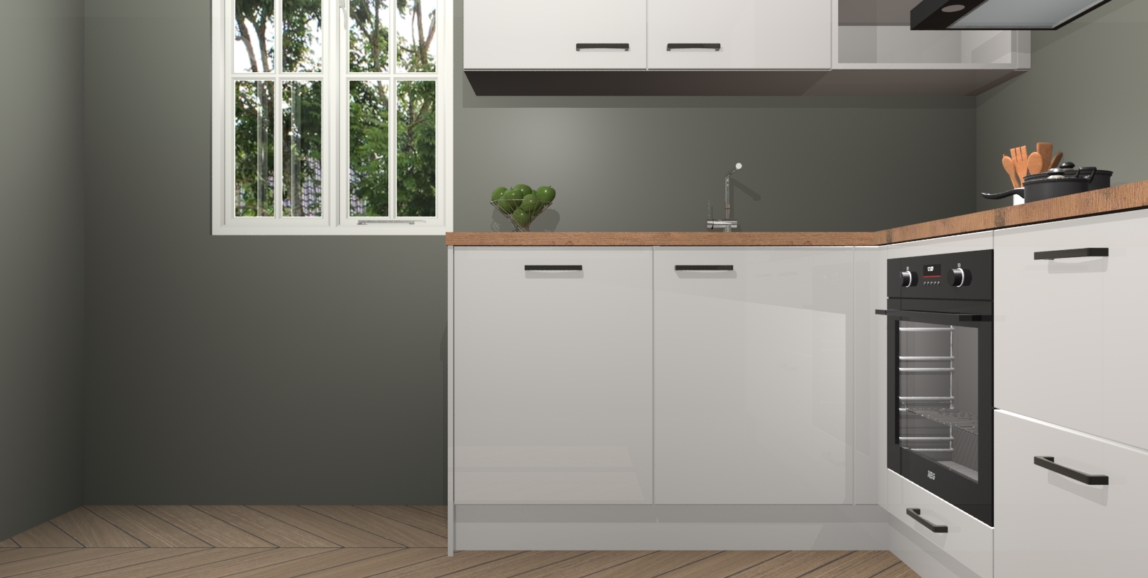 Maak kennis met de Zijdegrijze hoogglans keuken Boekarest, een moderne hoekkeuken waar al uw vrienden en familie jaloers op zullen zijn! Het verbluffende mooie ontwerp past in elk interieur en is een ideale keuze voor wie op zoek is naar een klassieke, maar verfijnde look.