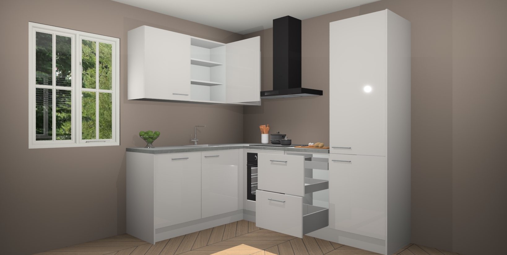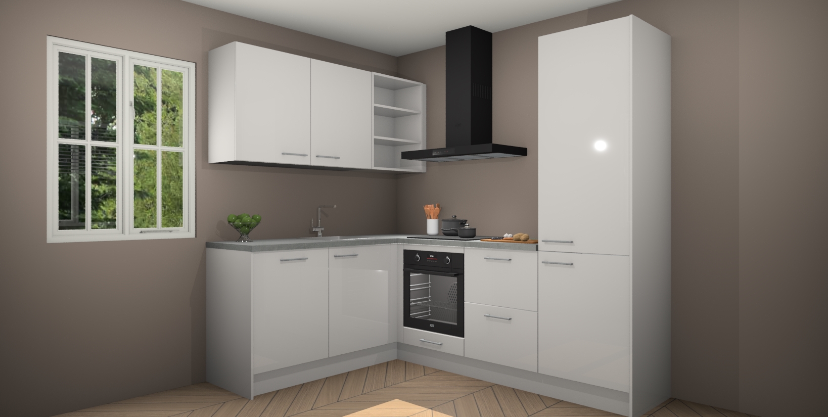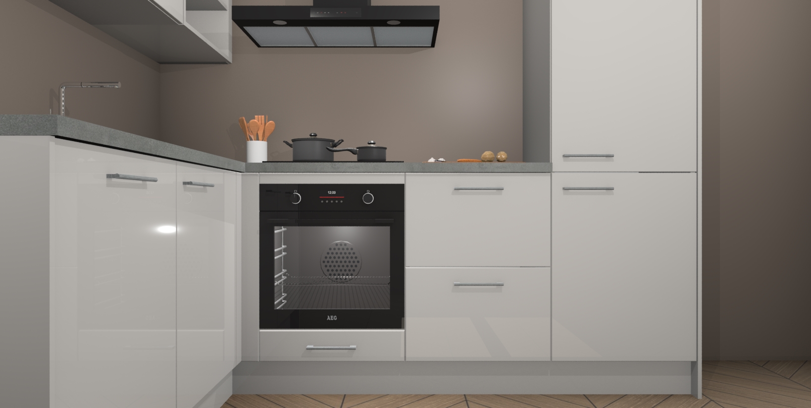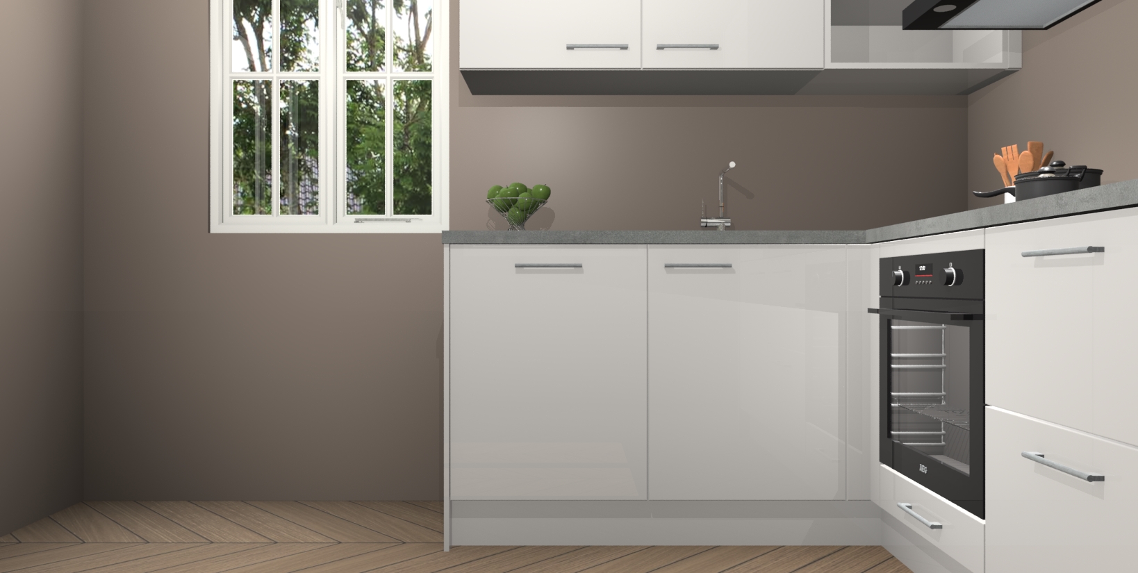 Maak kennis met de Zijdegrijze hoogglans keuken Boekarest, een moderne hoekkeuken waar al uw vrienden en familie jaloers op zullen zijn! Het verbluffende mooie ontwerp past in elk interieur en is een ideale keuze voor wie op zoek is naar een klassieke, maar verfijnde look.
