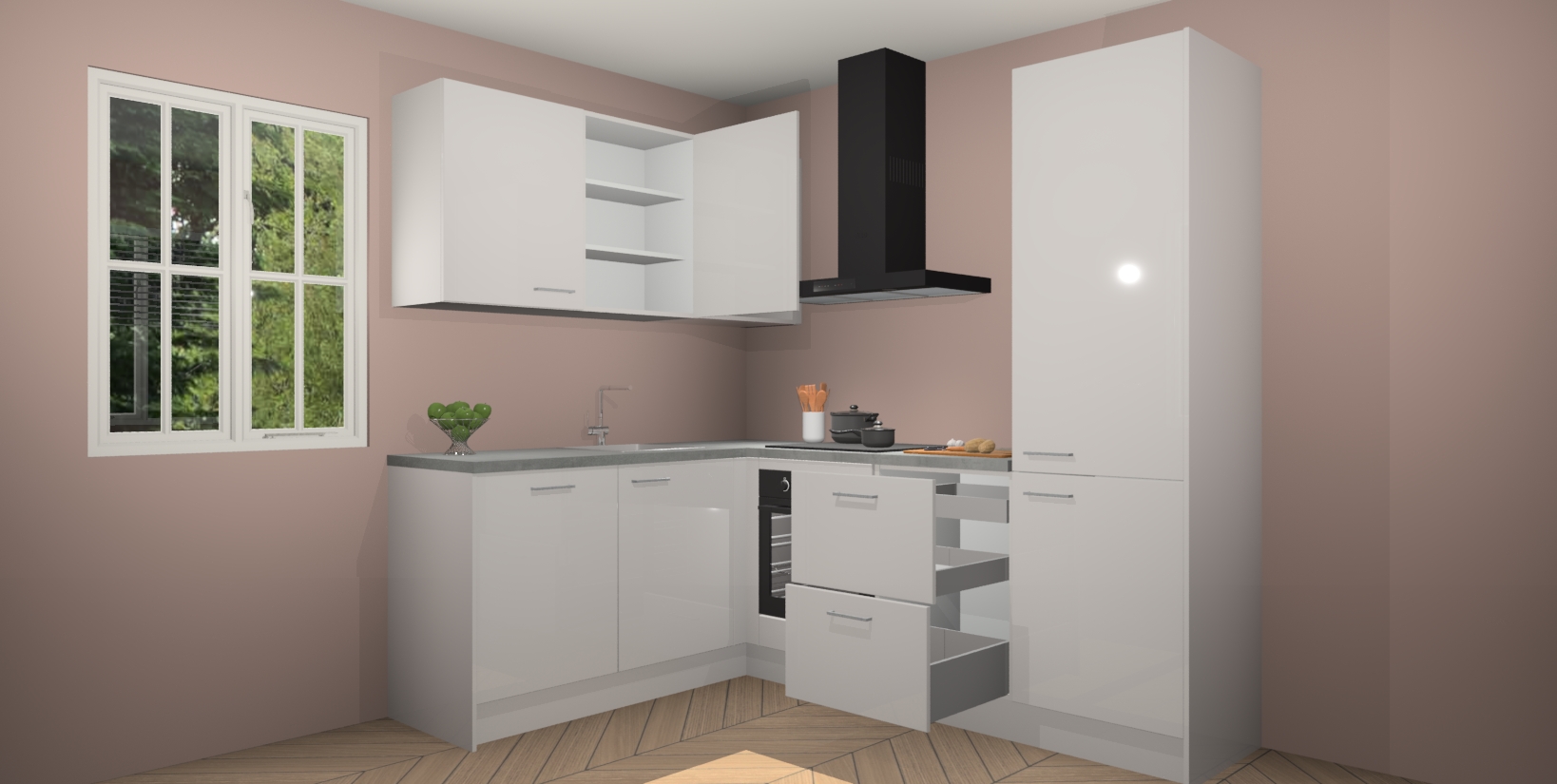 Voor nog meer gemak heeft deze keuken vijf ingebouwde apparaten - oven, inductiekookplaat, afzuigkap, vaatwasser en koelkast. Bovendien hebben alle kasten softclose deuren voor extra comfort bij het sluiten. Dit alles voor een verrassend lage vaste prijs - u vindt nergens anders een betere deal!