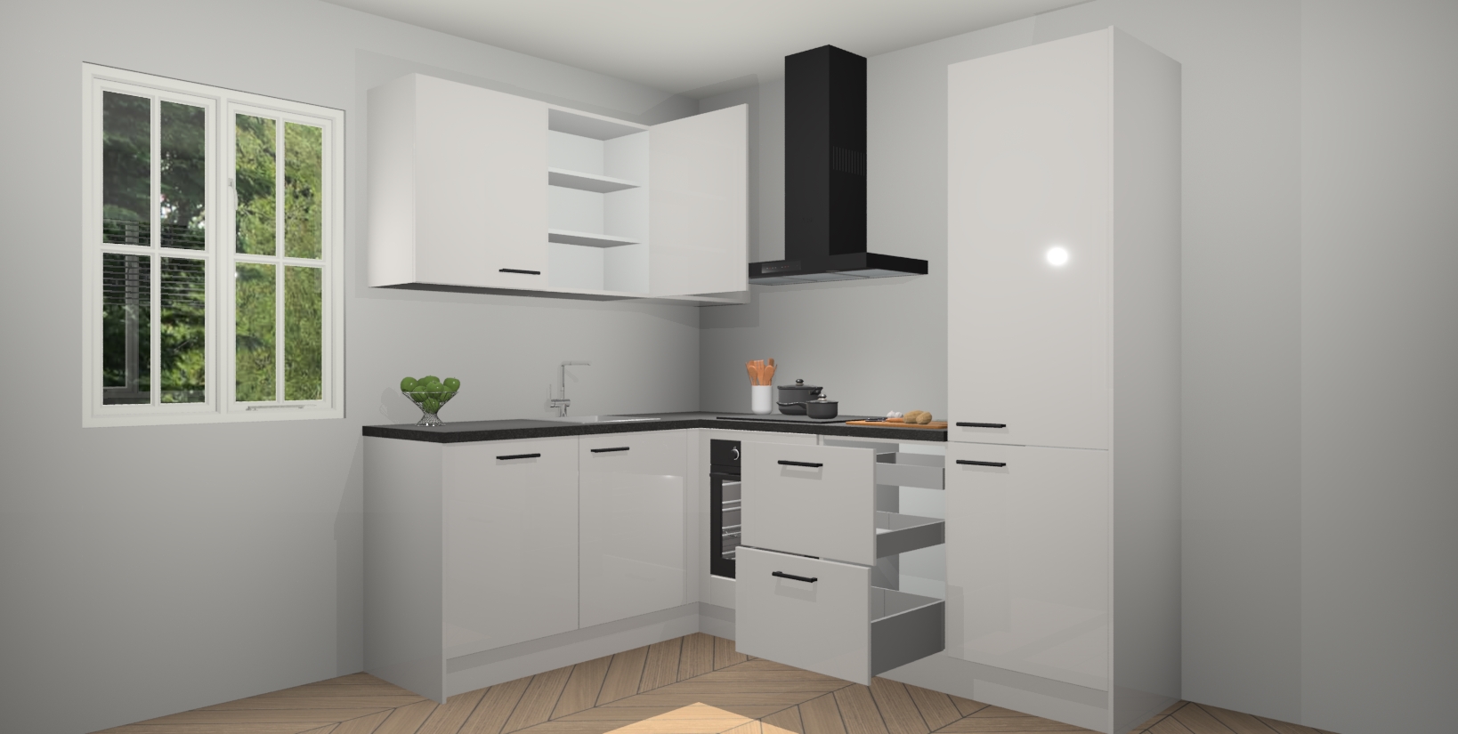 Voor nog meer gemak heeft deze keuken vijf ingebouwde apparaten - oven, inductiekookplaat, afzuigkap, vaatwasser en koelkast. Bovendien hebben alle kasten softclose deuren voor extra comfort bij het sluiten. Dit alles voor een verrassend lage vaste prijs - u vindt nergens anders een betere deal!