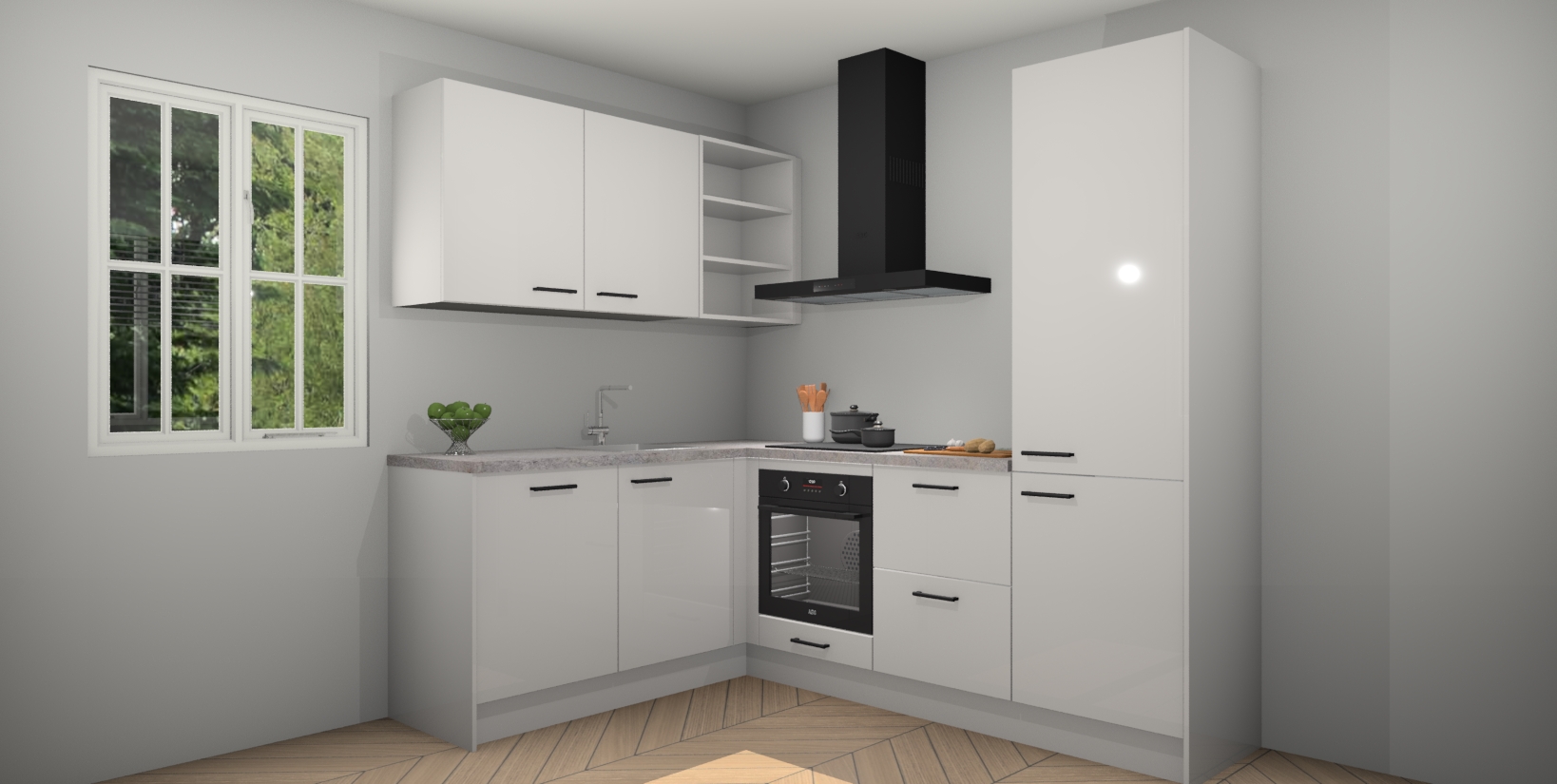 Voor nog meer gemak heeft deze keuken vijf ingebouwde apparaten - oven, inductiekookplaat, afzuigkap, vaatwasser en koelkast. Bovendien hebben alle kasten softclose deuren voor extra comfort bij het sluiten. Dit alles voor een verrassend lage vaste prijs - u vindt nergens anders een betere deal!