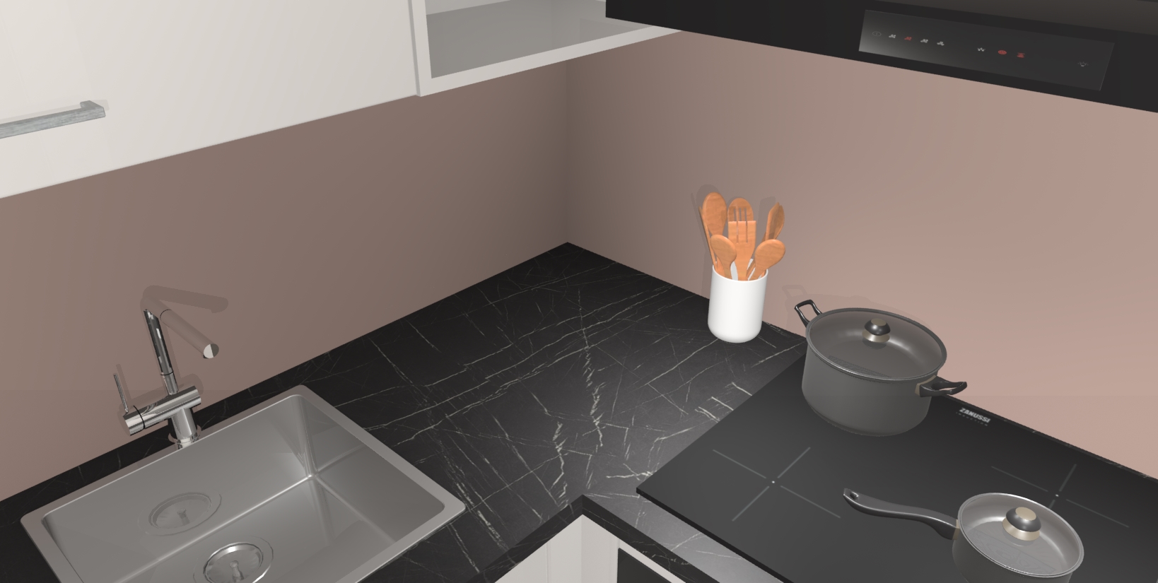 - Uitsparing van kookplaat, spoelbak en kraan dient u zelf te verzorgen.