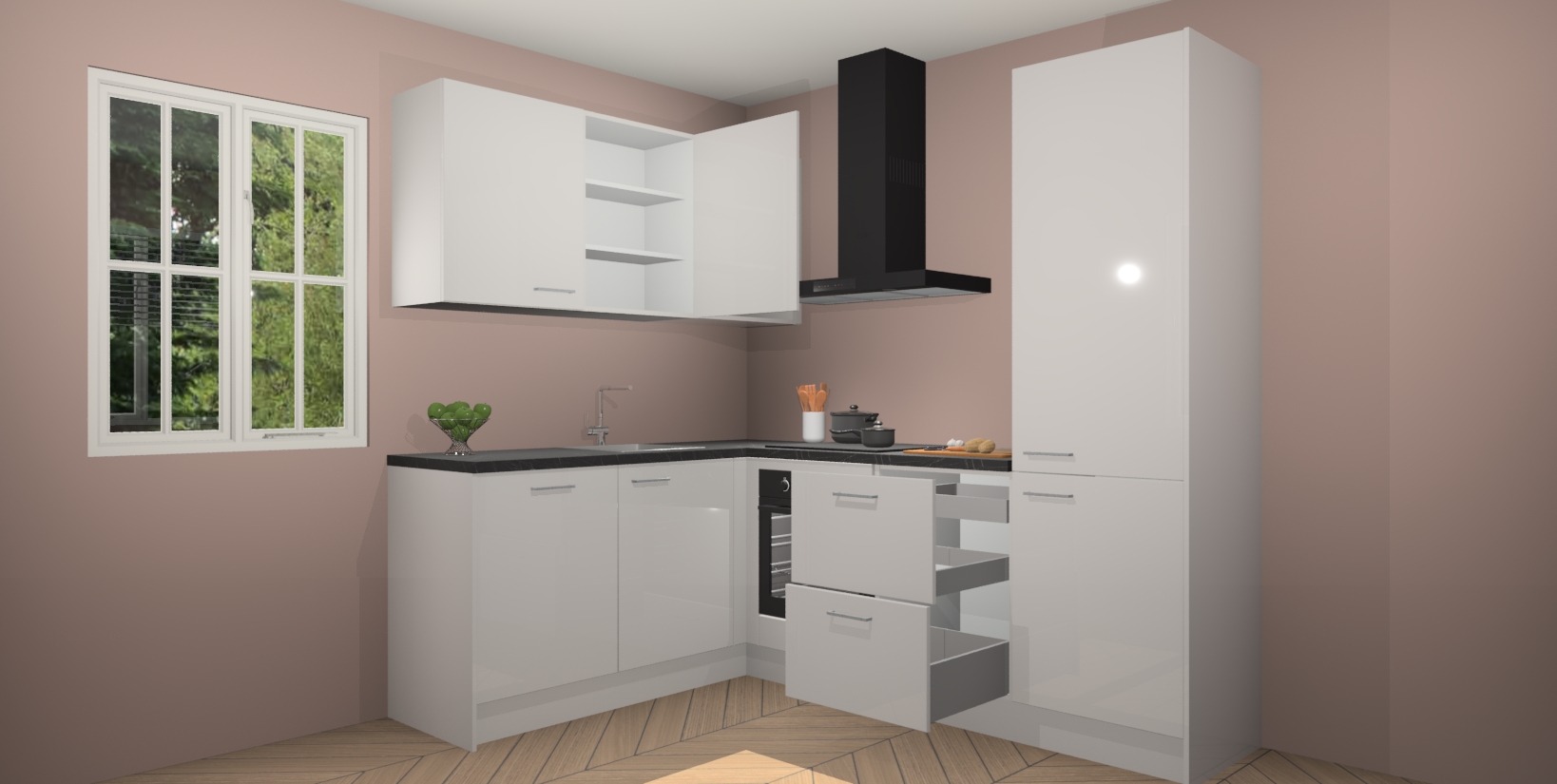 Voor nog meer gemak heeft deze keuken vijf ingebouwde apparaten - oven, inductiekookplaat, afzuigkap, vaatwasser en koelkast. Bovendien hebben alle kasten softclose deuren voor extra comfort bij het sluiten. Dit alles voor een verrassend lage vaste prijs - u vindt nergens anders een betere deal!