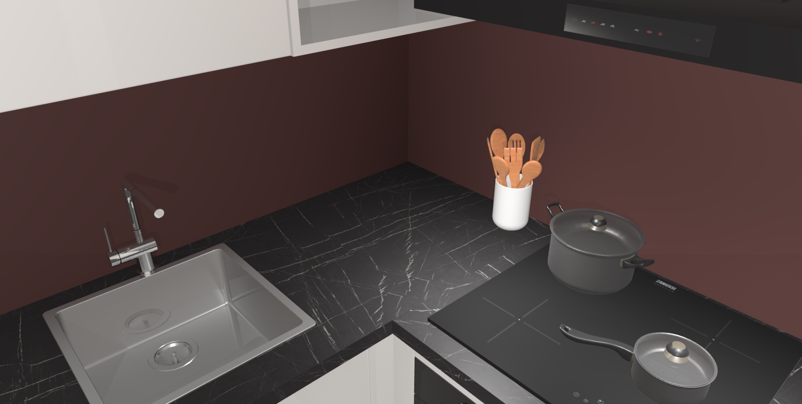 - Uitsparing van kookplaat, spoelbak en kraan dient u zelf te verzorgen.