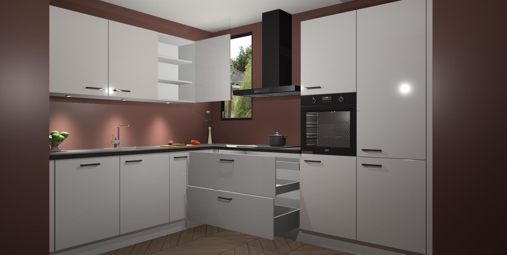 De ruime opbergruimte van dit model maakt het bereiden van voedsel en het gebruik van apparaten snel en gemakkelijk. Het beste van alles is dat het wordt geleverd met vijf inbouwapparaten: een oven, inductiekookplaat, afzuigkap, vaatwasser en koelkast - die allemaal gemakkelijk kunnen worden opgewaardeerd naar AEG na aankoop. Wat de gemaksfactor nog groter maakt, is het feit dat alle cabines voorgemonteerd worden geleverd, zodat u er meteen mee aan de slag kunt!