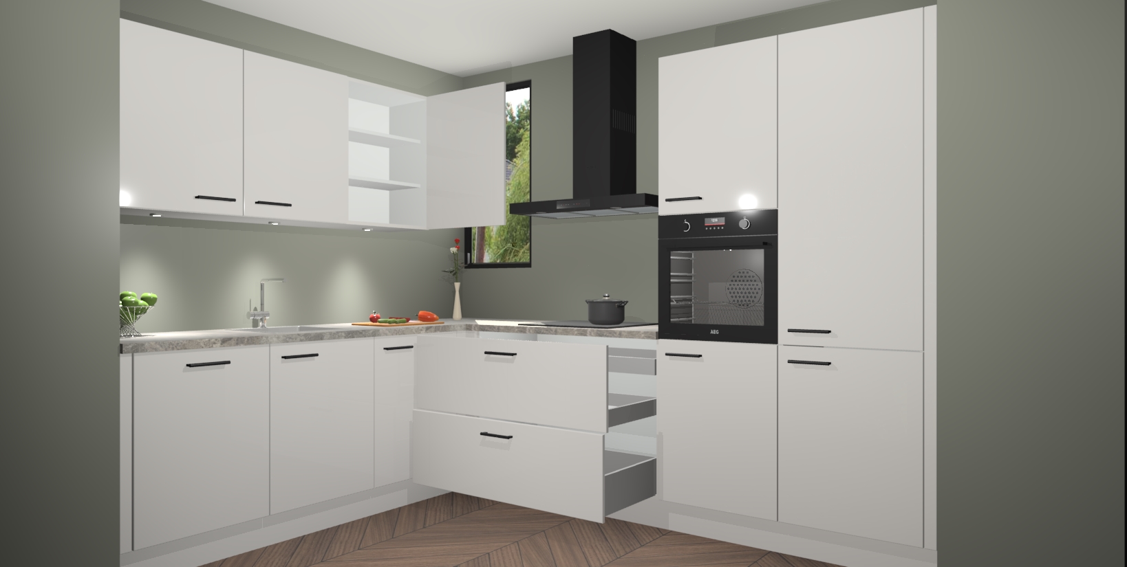 De ruime opbergruimte van dit model maakt het bereiden van voedsel en het gebruik van apparaten snel en gemakkelijk. Het beste van alles is dat het wordt geleverd met vijf inbouwapparaten: een oven, inductiekookplaat, afzuigkap, vaatwasser en koelkast - die allemaal gemakkelijk kunnen worden opgewaardeerd naar AEG na aankoop. Wat de gemaksfactor nog groter maakt, is het feit dat alle cabines voorgemonteerd worden geleverd, zodat u er meteen mee aan de slag kunt!