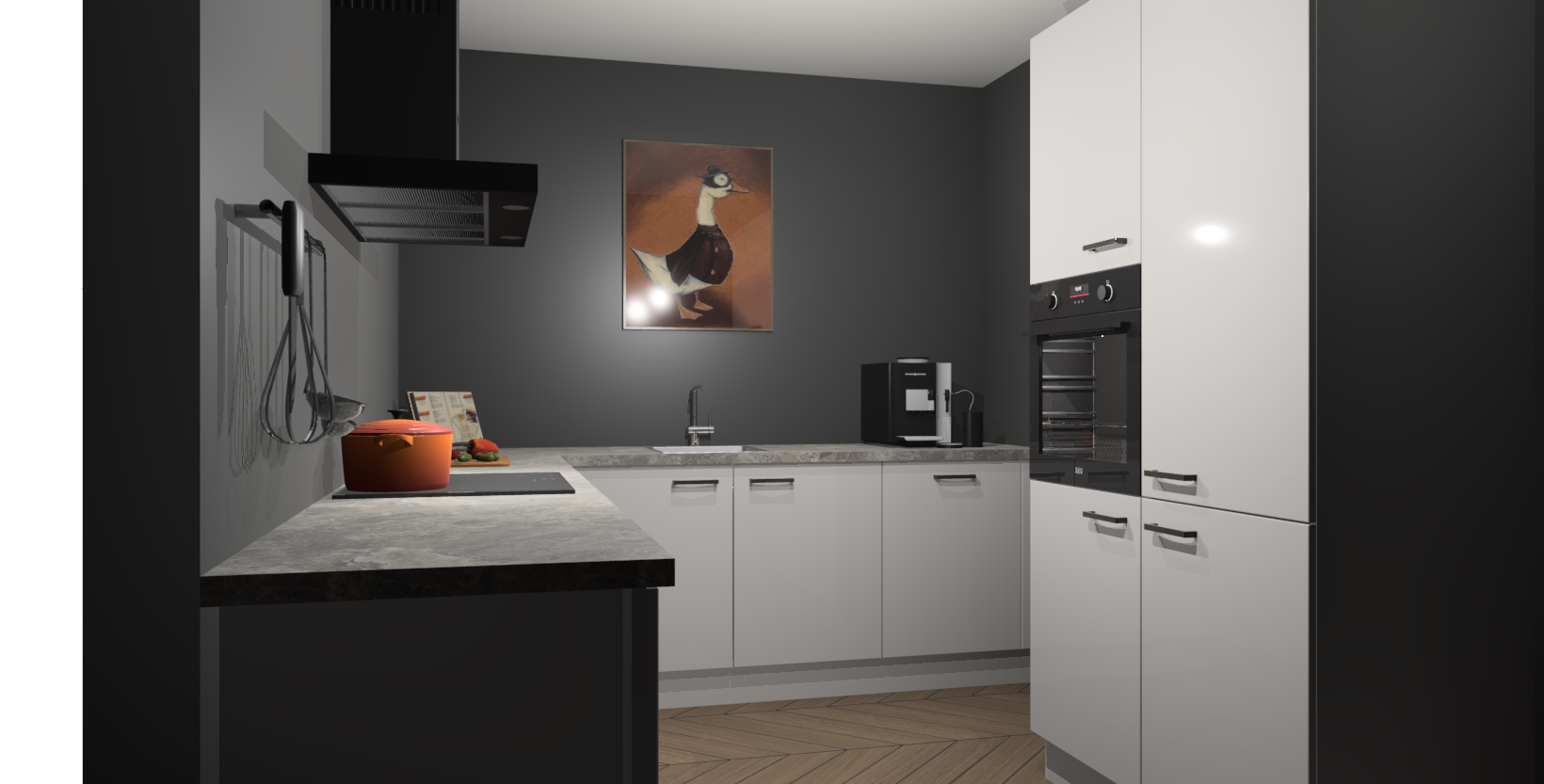 Met een modern, tijdloos design en ruime opslagruimte, zult u zich in no-time thuis voelen in uw nieuwe keuken. Uw leven wordt eenvoudiger met de soft-close deuren die voor het ultieme stille comfort zorgen - geen geluid dat u stoort terwijl u kookt. Ook is de keuken voorzien van 5 ingebouwde apparaten: een oven, inductie kookplaat, afzuigkap, vaatwasser en koelkast. Deze kunnen gemakkelijk na bestelling worden bijgewerkt naar AEG - waardoor uw luxe ervaring compleet is.