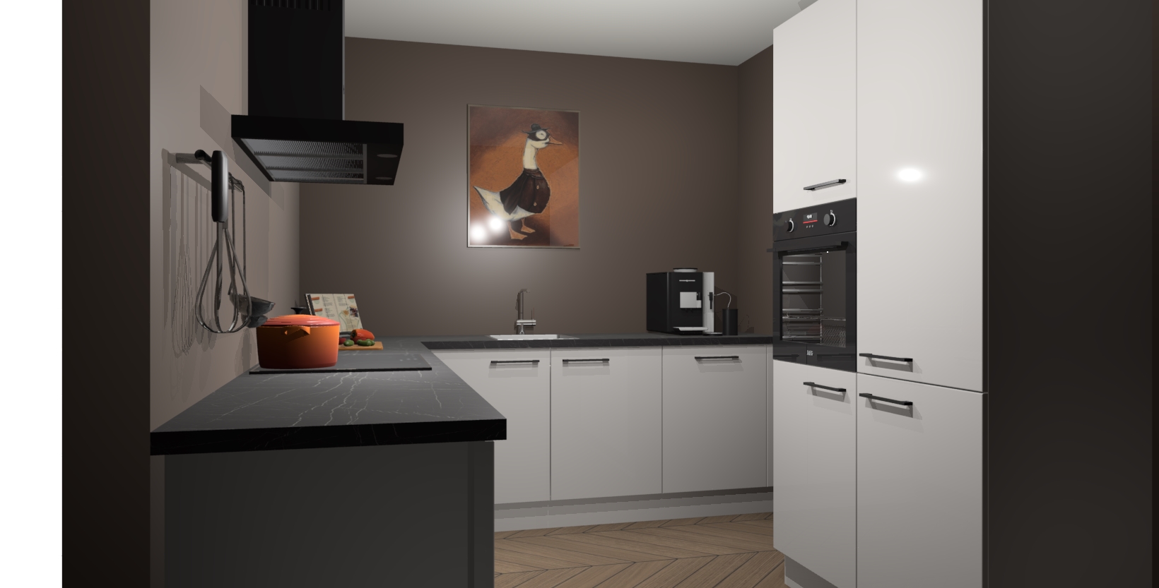 Met een modern, tijdloos design en ruime opslagruimte, zult u zich in no-time thuis voelen in uw nieuwe keuken. Uw leven wordt eenvoudiger met de soft-close deuren die voor het ultieme stille comfort zorgen - geen geluid dat u stoort terwijl u kookt. Ook is de keuken voorzien van 5 ingebouwde apparaten: een oven, inductie kookplaat, afzuigkap, vaatwasser en koelkast. Deze kunnen gemakkelijk na bestelling worden bijgewerkt naar AEG - waardoor uw luxe ervaring compleet is.
