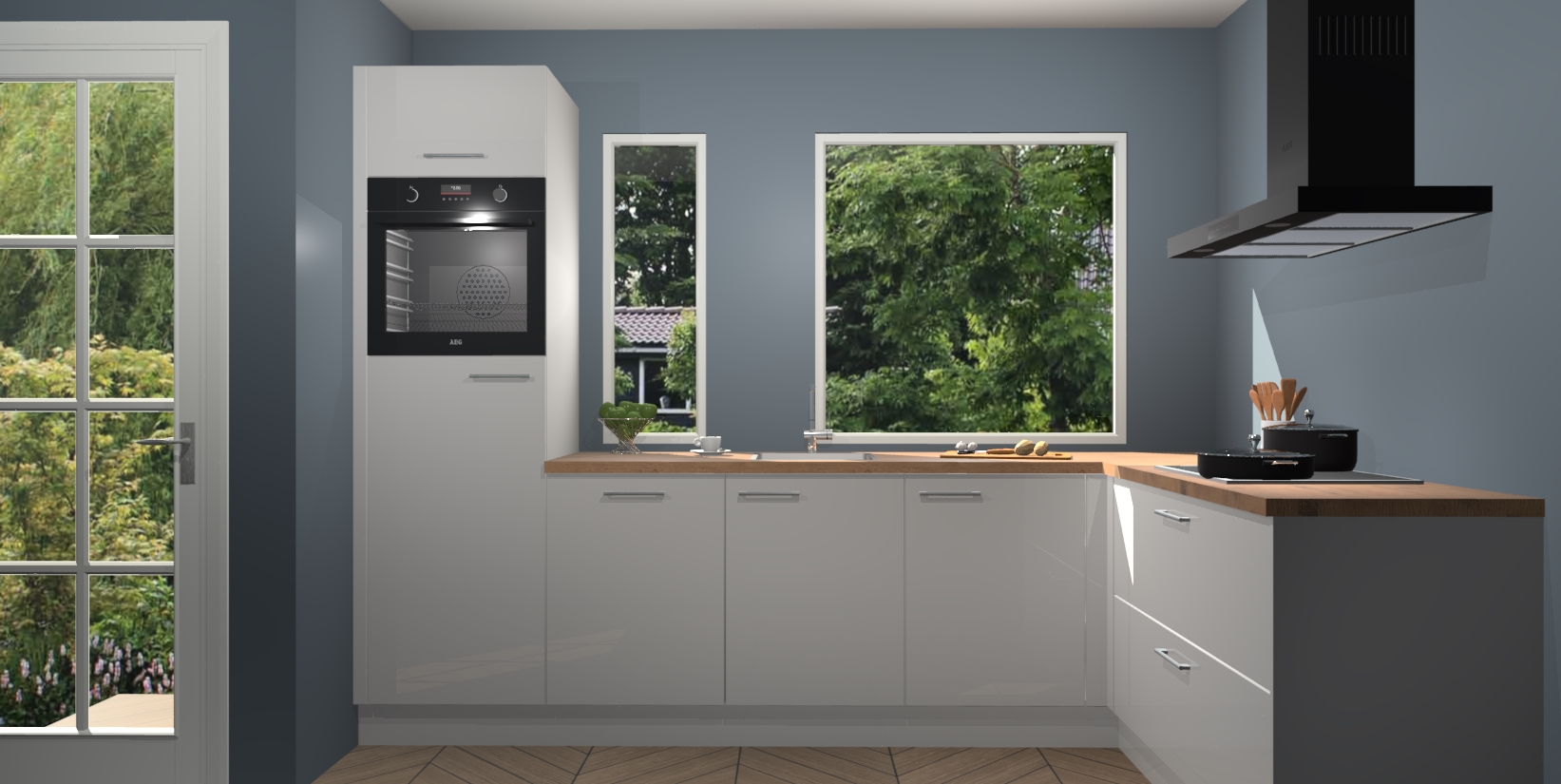 Deze complete keuken wordt geleverd met 5 inbouwapparaten: een oven, inductiekookplaat, afzuigkap, vaatwasser en koelkast. De toestellen kunnen na bestelling ook gemakkelijk worden opgewaardeerd naar AEG. Bovendien is elke deur in deze keuken voorzien van handige softclose technologie voor eenvoudig gebruik! Als een leuke toevoeging zit in deze keuken ook een carrousel, zo hoef je niet meer de hoek in duiken om iets te pakken.