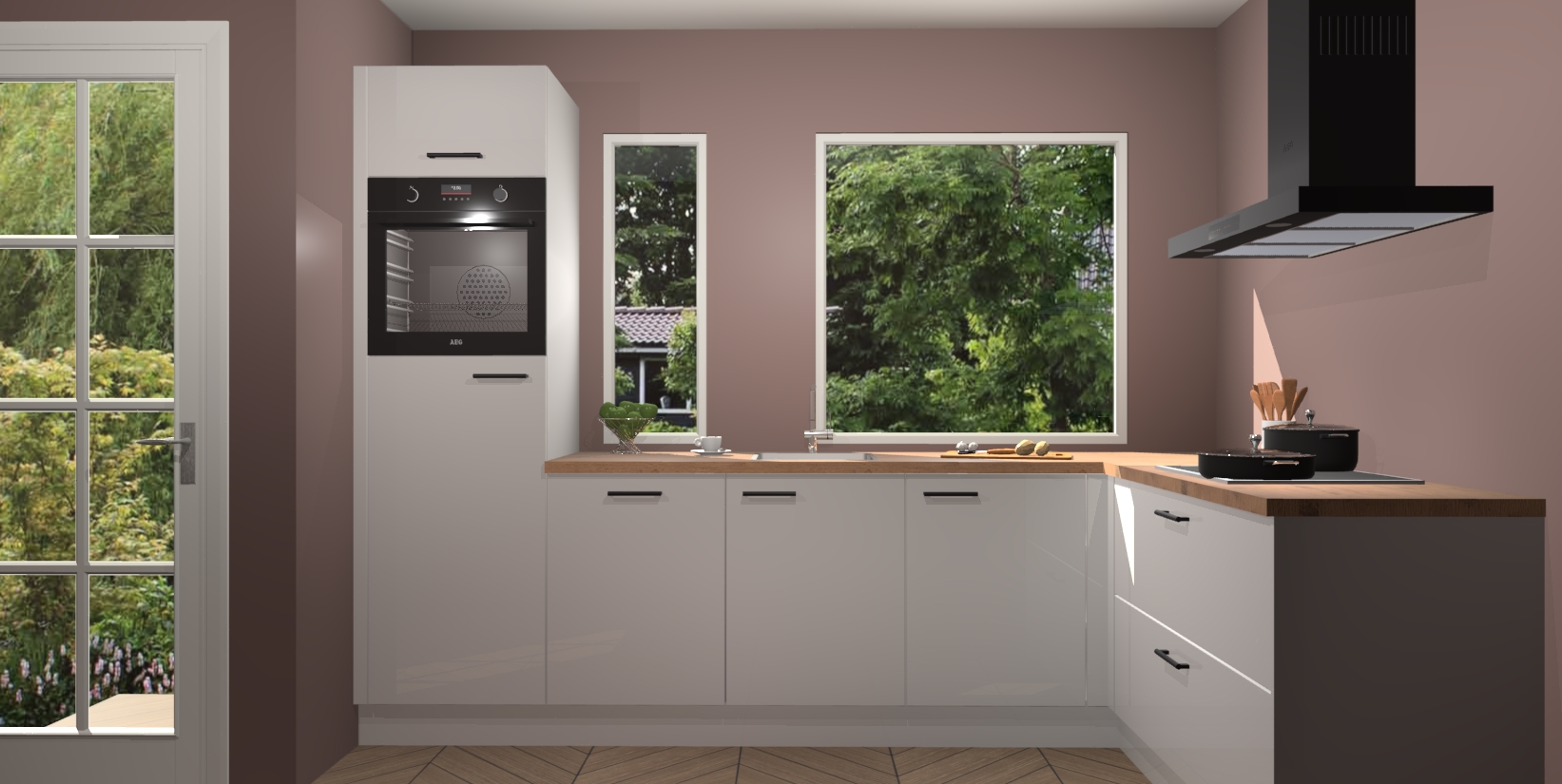 Deze complete keuken wordt geleverd met 5 inbouwapparaten: een oven, inductiekookplaat, afzuigkap, vaatwasser en koelkast. De toestellen kunnen na bestelling ook gemakkelijk worden opgewaardeerd naar AEG. Bovendien is elke deur in deze keuken voorzien van handige softclose technologie voor eenvoudig gebruik! Als een leuke toevoeging zit in deze keuken ook een carrousel, zo hoef je niet meer de hoek in duiken om iets te pakken.