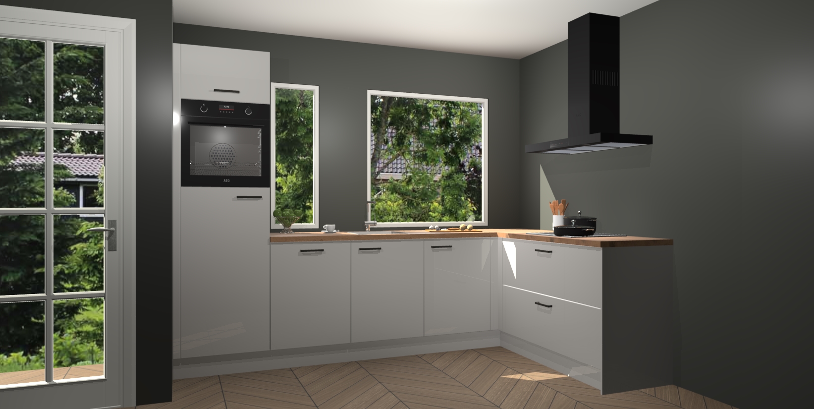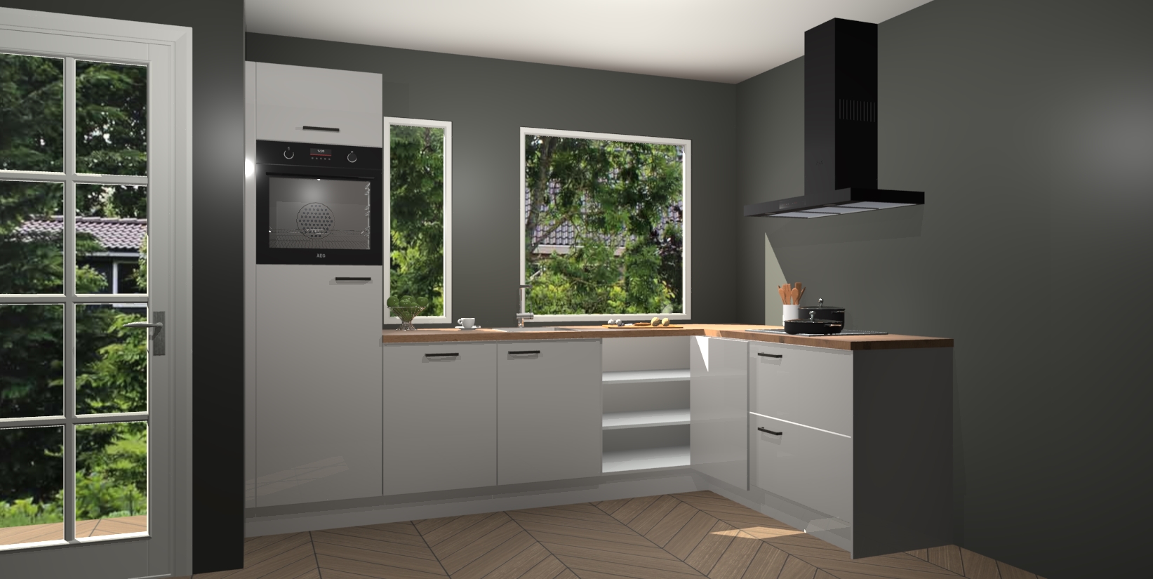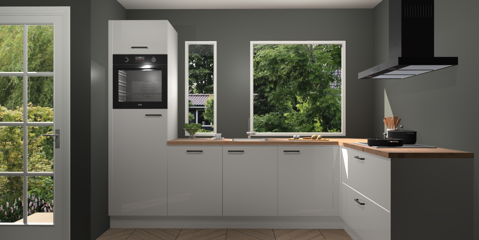 Deze complete keuken wordt geleverd met 5 inbouwapparaten: een oven, inductiekookplaat, afzuigkap, vaatwasser en koelkast. De toestellen kunnen na bestelling ook gemakkelijk worden opgewaardeerd naar AEG. Bovendien is elke deur in deze keuken voorzien van handige softclose technologie voor eenvoudig gebruik! Als een leuke toevoeging zit in deze keuken ook een carrousel, zo hoef je niet meer de hoek in duiken om iets te pakken.