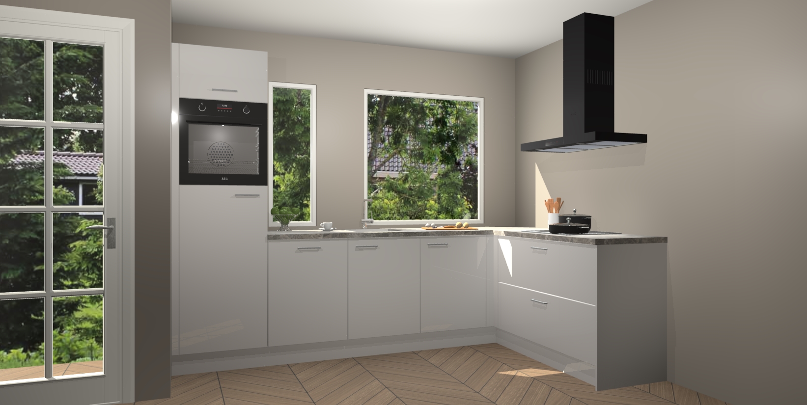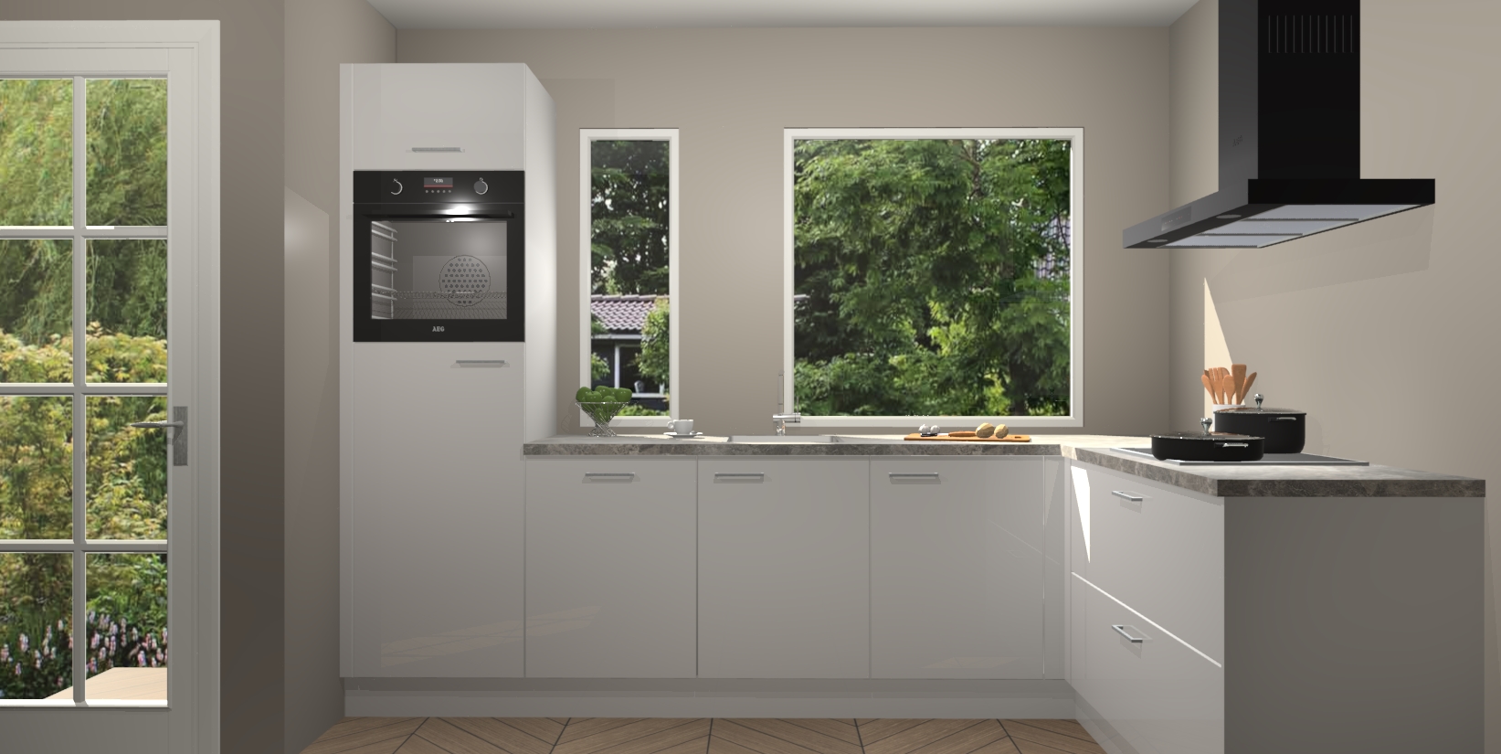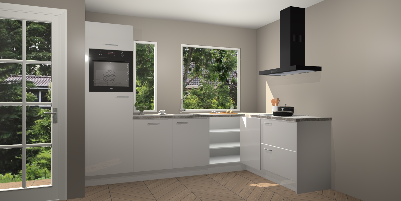 Deze complete keuken wordt geleverd met 5 inbouwapparaten: een oven, inductiekookplaat, afzuigkap, vaatwasser en koelkast. De toestellen kunnen na bestelling ook gemakkelijk worden opgewaardeerd naar AEG. Bovendien is elke deur in deze keuken voorzien van handige softclose technologie voor eenvoudig gebruik! Als een leuke toevoeging zit in deze keuken ook een carrousel, zo hoef je niet meer de hoek in duiken om iets te pakken.