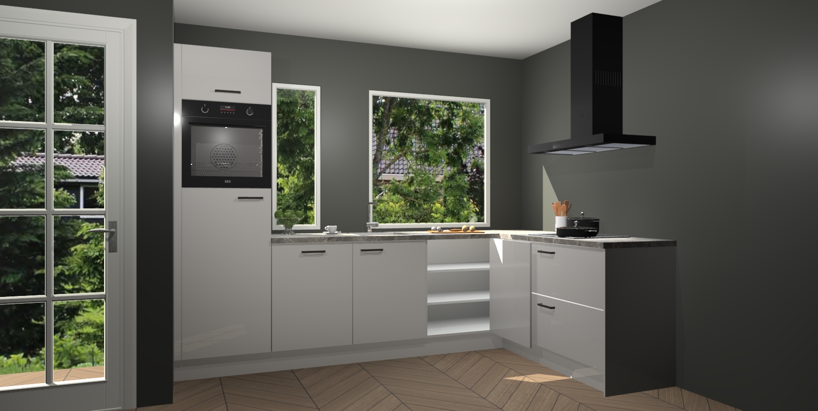 Deze complete keuken wordt geleverd met 5 inbouwapparaten: een oven, inductiekookplaat, afzuigkap, vaatwasser en koelkast. De toestellen kunnen na bestelling ook gemakkelijk worden opgewaardeerd naar AEG. Bovendien is elke deur in deze keuken voorzien van handige softclose technologie voor eenvoudig gebruik! Als een leuke toevoeging zit in deze keuken ook een carrousel, zo hoef je niet meer de hoek in duiken om iets te pakken.
