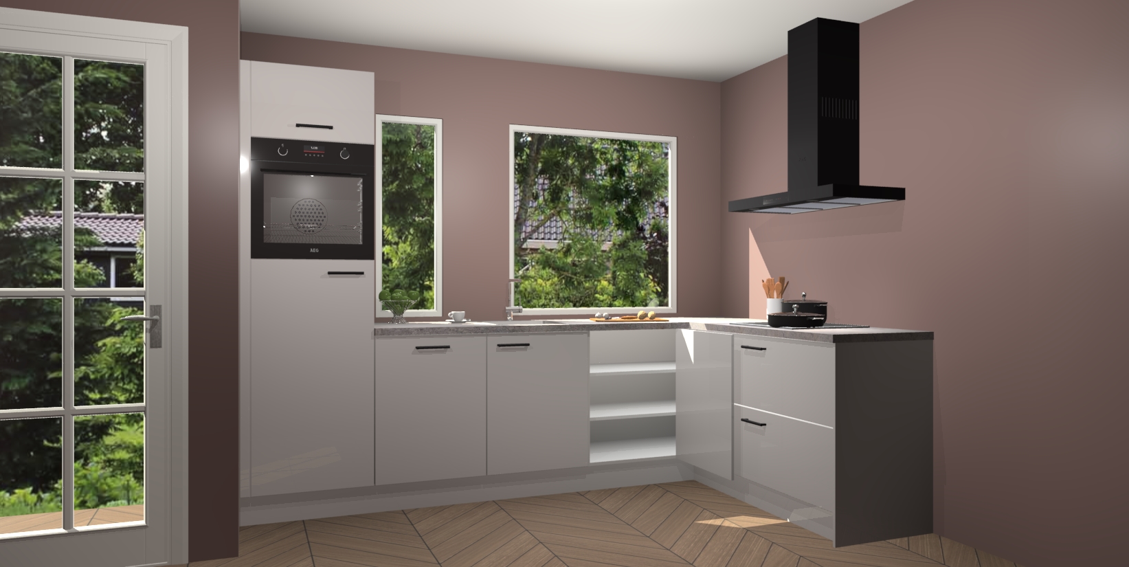 Deze complete keuken wordt geleverd met 5 inbouwapparaten: een oven, inductiekookplaat, afzuigkap, vaatwasser en koelkast. De toestellen kunnen na bestelling ook gemakkelijk worden opgewaardeerd naar AEG. Bovendien is elke deur in deze keuken voorzien van handige softclose technologie voor eenvoudig gebruik! Als een leuke toevoeging zit in deze keuken ook een carrousel, zo hoef je niet meer de hoek in duiken om iets te pakken.