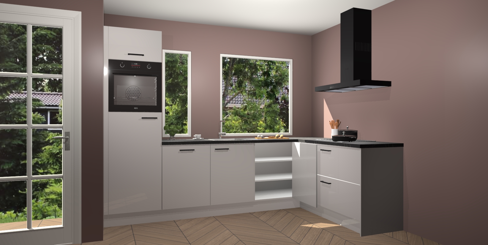 Deze complete keuken wordt geleverd met 5 inbouwapparaten: een oven, inductiekookplaat, afzuigkap, vaatwasser en koelkast. De toestellen kunnen na bestelling ook gemakkelijk worden opgewaardeerd naar AEG. Bovendien is elke deur in deze keuken voorzien van handige softclose technologie voor eenvoudig gebruik! Als een leuke toevoeging zit in deze keuken ook een carrousel, zo hoef je niet meer de hoek in duiken om iets te pakken.