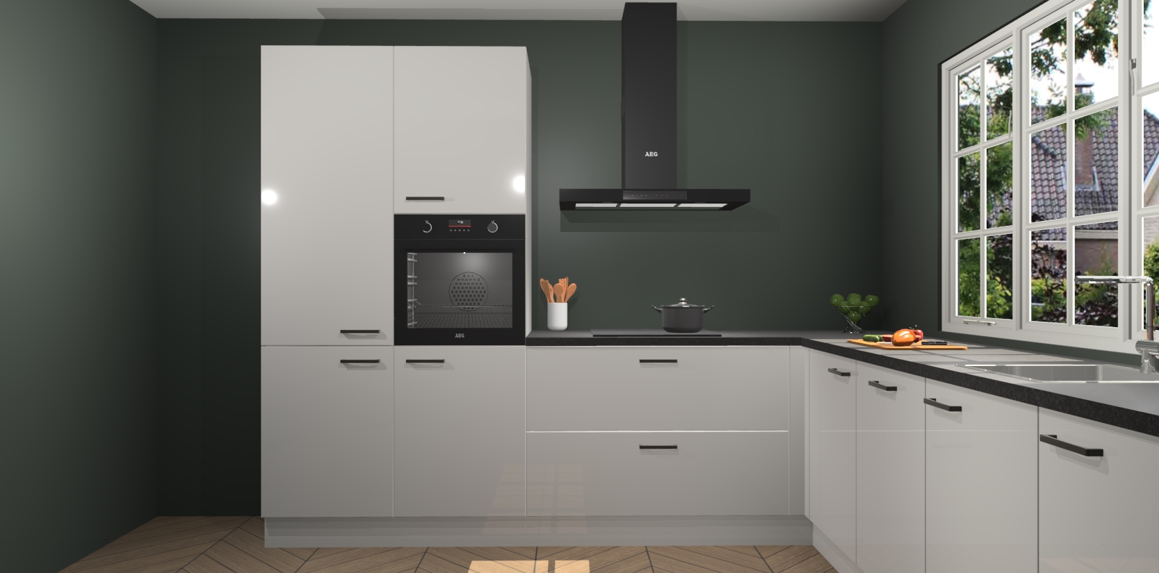 De keuken heeft veel opbergruimte, waardoor u alle ingrediënten gemakkelijk bereikbaar hebt staan. En daarnaast bevat deze volledig uitgeruste keuken ook 5 ingebouwde apparaten: een oven, inductiekookplaat, afzuigkap, vaatwasser en koelkast. Deze zijn heel eenvoudig na bestellen te upgraden naar AEG als u dit wilt. Bovendien zijn de softclose-kastdeuren ideaal; geef ze gewoon even een tikje en ze sluiten automatisch met geruisloze precisie.