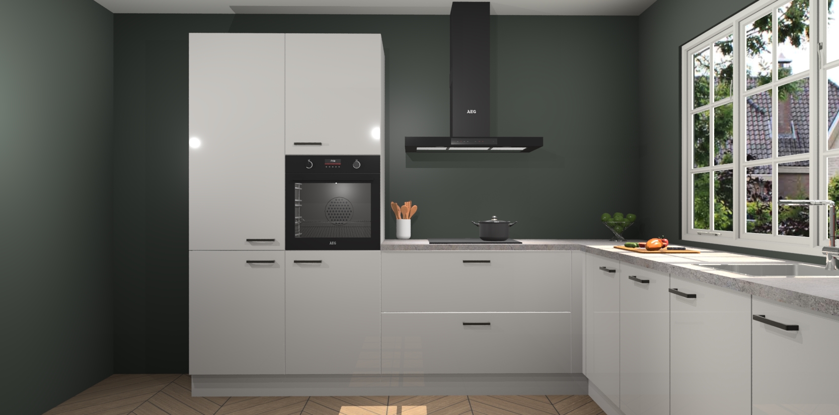 De keuken heeft veel opbergruimte, waardoor u alle ingrediënten gemakkelijk bereikbaar hebt staan. En daarnaast bevat deze volledig uitgeruste keuken ook 5 ingebouwde apparaten: een oven, inductiekookplaat, afzuigkap, vaatwasser en koelkast. Deze zijn heel eenvoudig na bestellen te upgraden naar AEG als u dit wilt. Bovendien zijn de softclose-kastdeuren ideaal; geef ze gewoon even een tikje en ze sluiten automatisch met geruisloze precisie.