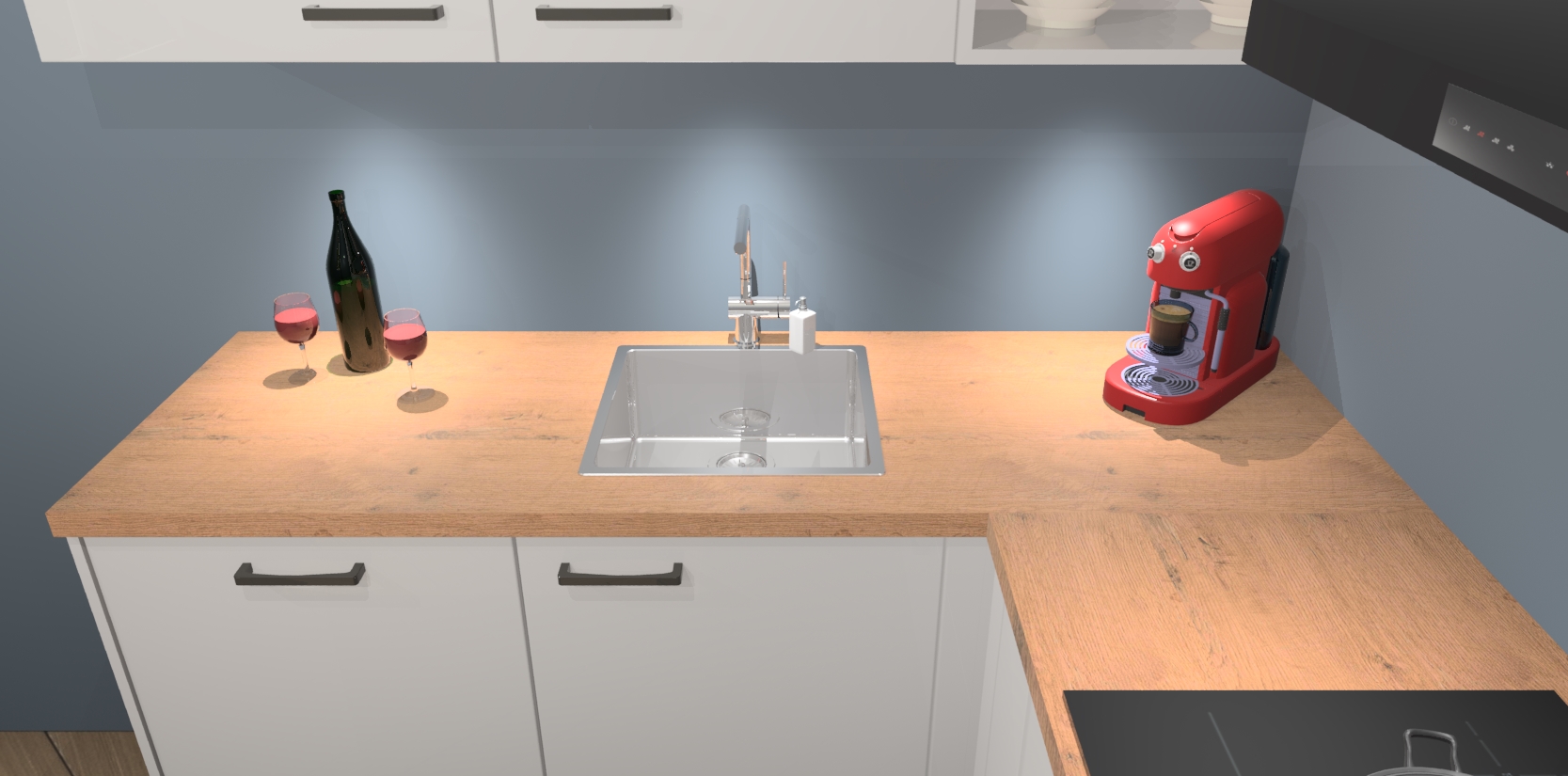 - Bij een hoekwerkblad zijn de hoeken in gevreesd en op maat gemaakt