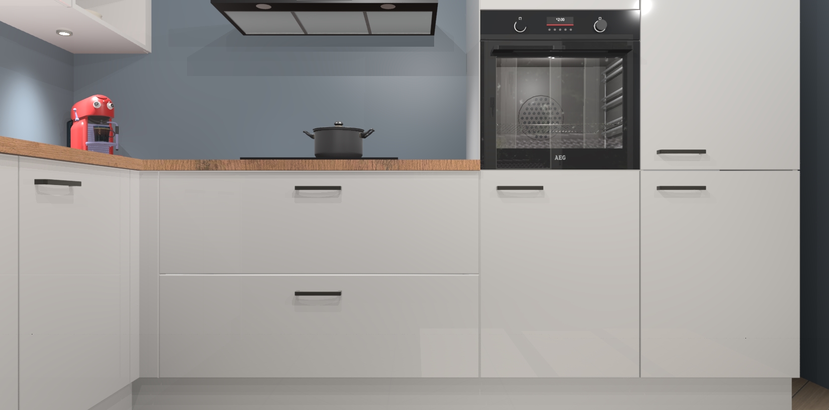 De Zijdegrijze Hoogglans keuken Cognac is een adembenemend ontwerp met een modern en tijdloos uiterlijk. Deze luxe keuken straalt echt aristocratisch uit, waardoor uw koken plezieriger zal worden! Het prachtige design begint bij de hoekkeuken, wat perfect past bij elk type interieur. Bovendien bevat deze hoogwaardige set vijf inbouwapparaten - van oven tot koelkast - die via bestelling naar AEG geüpgraded kunnen worden!