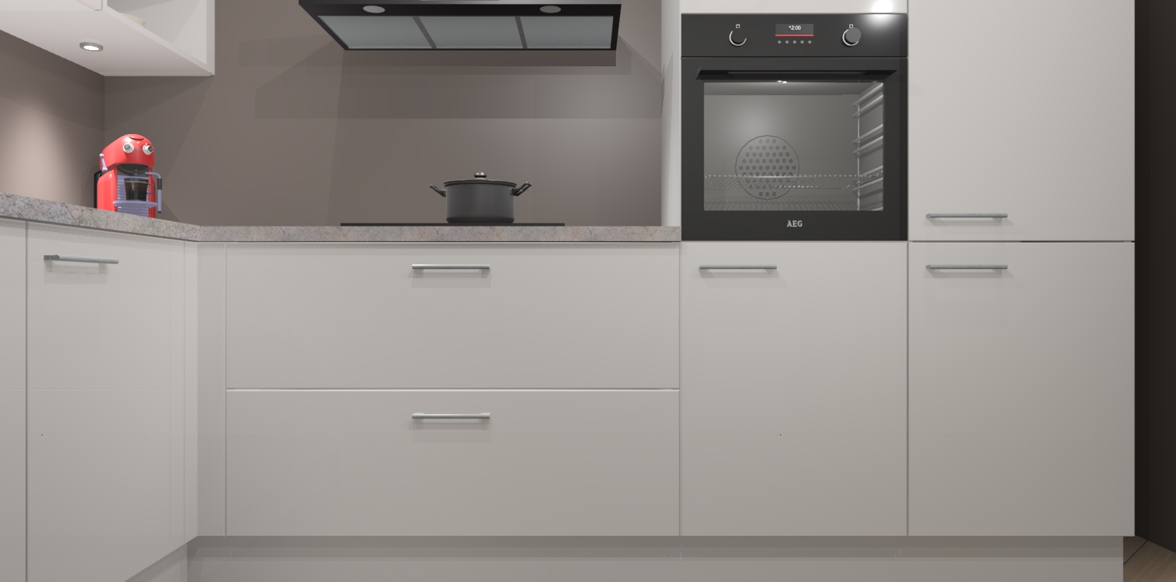 De Zijdegrijze Hoogglans keuken Cognac is een adembenemend ontwerp met een modern en tijdloos uiterlijk. Deze luxe keuken straalt echt aristocratisch uit, waardoor uw koken plezieriger zal worden! Het prachtige design begint bij de hoekkeuken, wat perfect past bij elk type interieur. Bovendien bevat deze hoogwaardige set vijf inbouwapparaten - van oven tot koelkast - die via bestelling naar AEG geüpgraded kunnen worden!