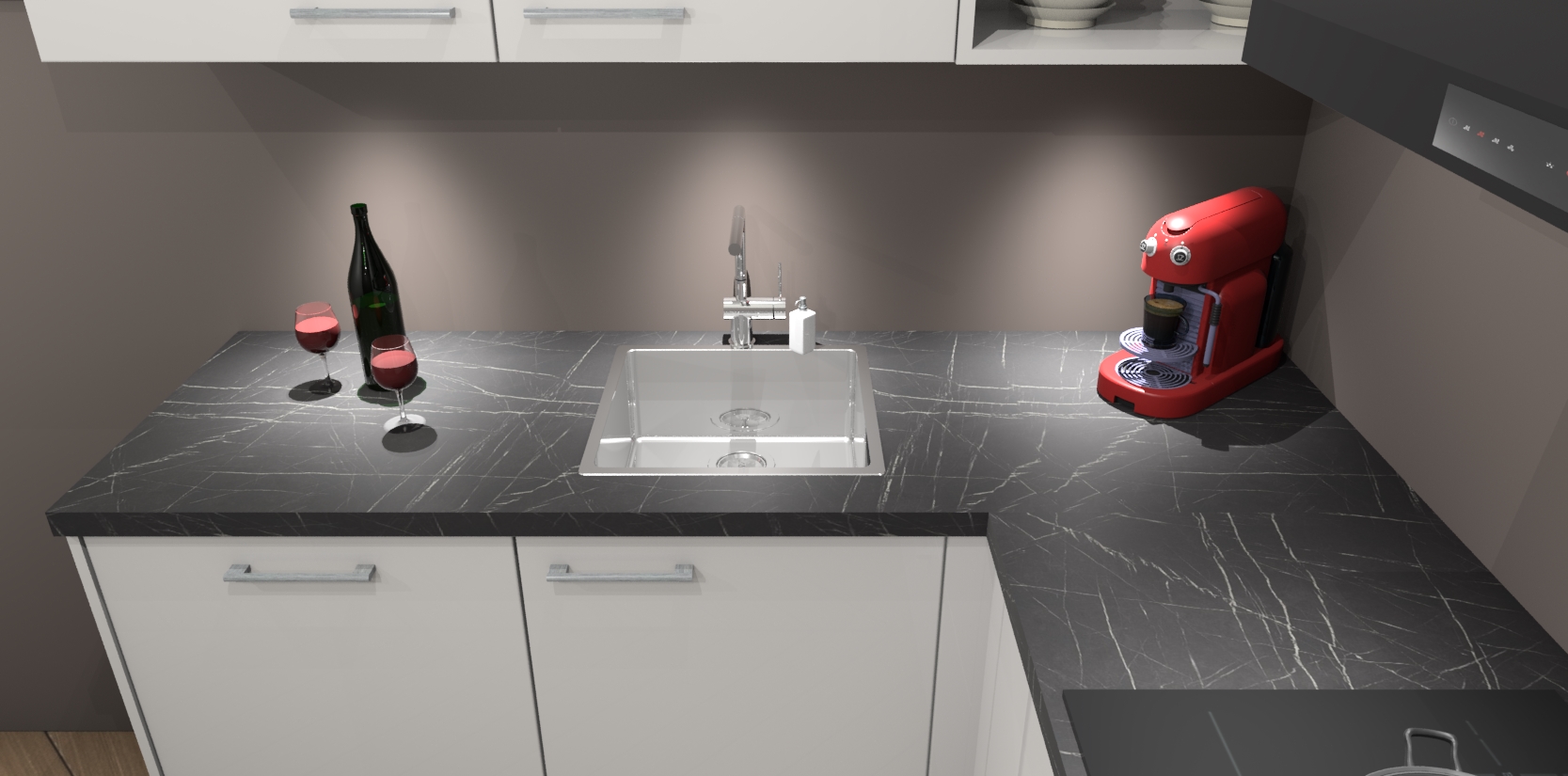 - Bij een hoekwerkblad zijn de hoeken in gevreesd en op maat gemaakt
