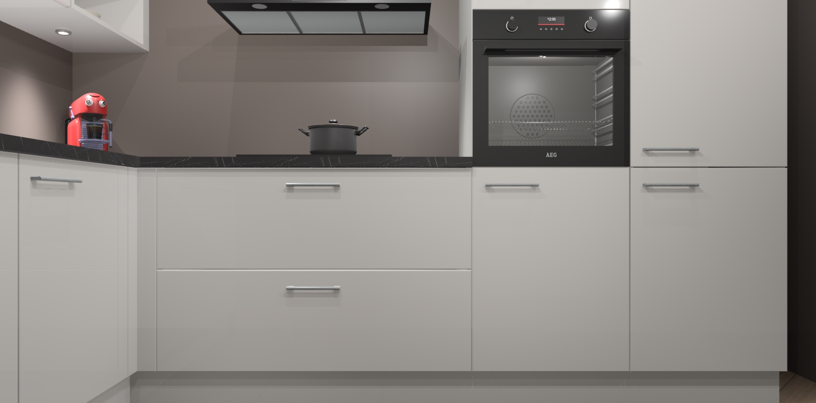 De Zijdegrijze Hoogglans keuken Cognac is een adembenemend ontwerp met een modern en tijdloos uiterlijk. Deze luxe keuken straalt echt aristocratisch uit, waardoor uw koken plezieriger zal worden! Het prachtige design begint bij de hoekkeuken, wat perfect past bij elk type interieur. Bovendien bevat deze hoogwaardige set vijf inbouwapparaten - van oven tot koelkast - die via bestelling naar AEG geüpgraded kunnen worden!
