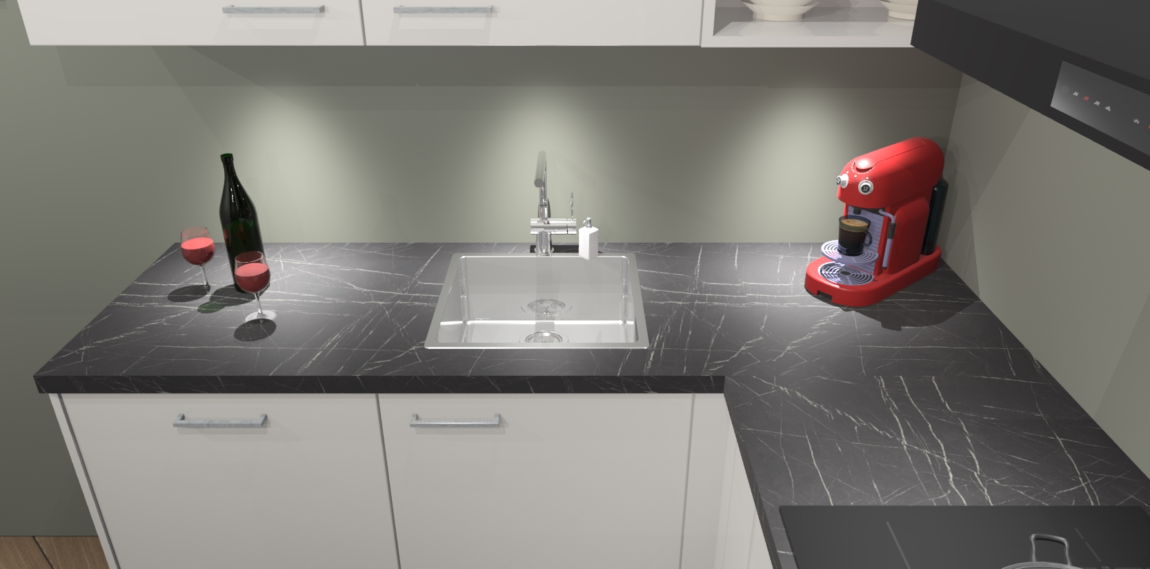 - Bij een hoekwerkblad zijn de hoeken in gevreesd en op maat gemaakt
