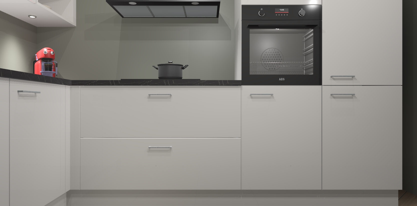De Zijdegrijze Hoogglans keuken Cognac is een adembenemend ontwerp met een modern en tijdloos uiterlijk. Deze luxe keuken straalt echt aristocratisch uit, waardoor uw koken plezieriger zal worden! Het prachtige design begint bij de hoekkeuken, wat perfect past bij elk type interieur. Bovendien bevat deze hoogwaardige set vijf inbouwapparaten - van oven tot koelkast - die via bestelling naar AEG geüpgraded kunnen worden!