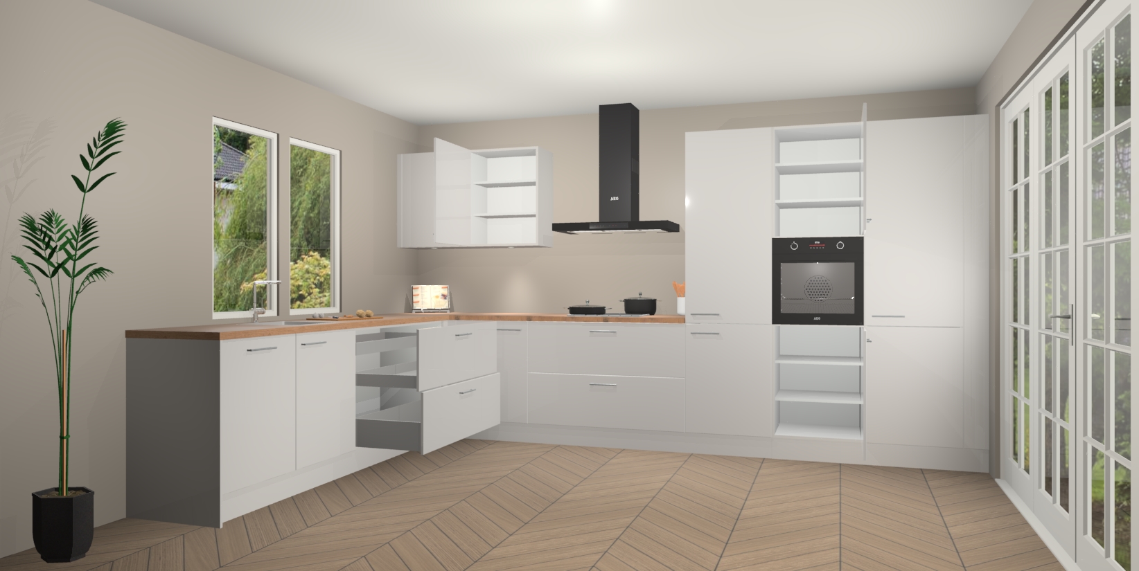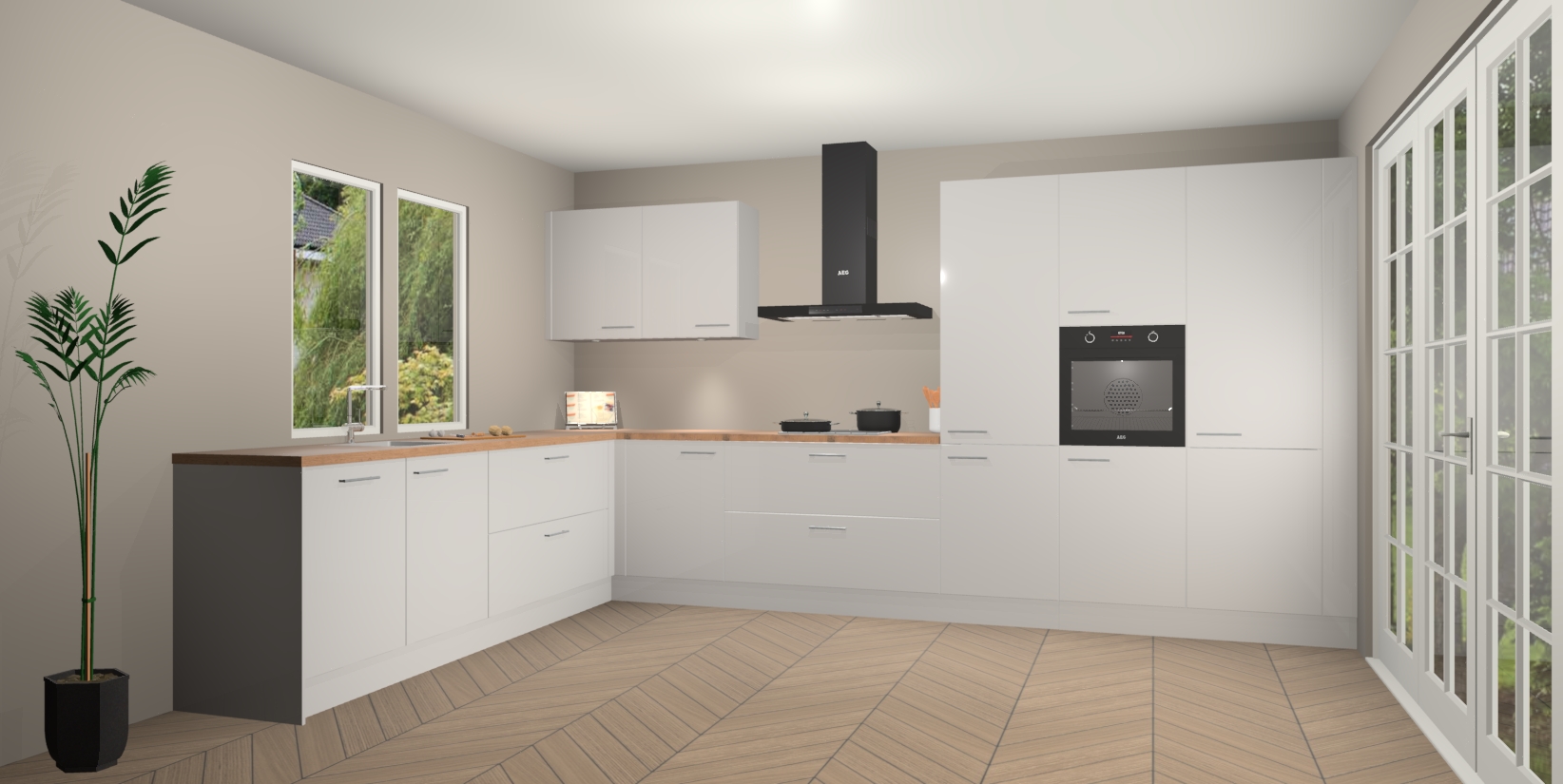 Inclusief plinten, stelpoten en werkblad