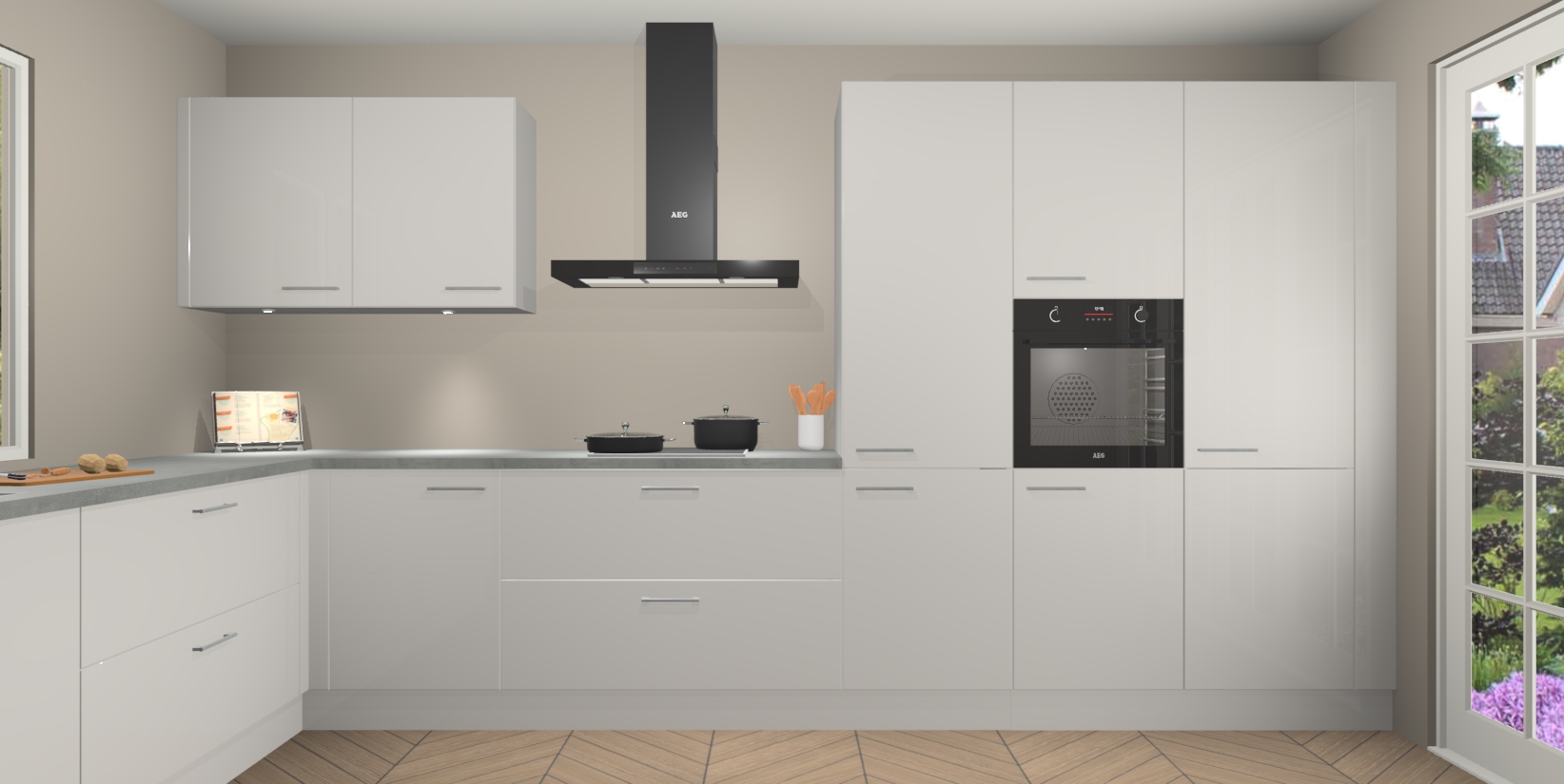 Heeft u nog apparatuur nodig? Geen probleem: de Zijdegrijze hoogglans keuken Debrecen bevat vijf ingebouwde apparaten - een oven, inductiekookplaat, afzuigkap, vaatwasser en koelkast - die gemakkelijk kunnen worden bijgewerkt naar AEG na bestelling. En als dat nog niet genoeg is; onze kasten worden pre-geassembleerd geleverd en zijn verkrijgbaar tegen een vastgeroeste lage prijs! U hoeft nooit meer te zoeken naar goede kwaliteit en service want onze producten hebben echt Duitse kwaliteit.