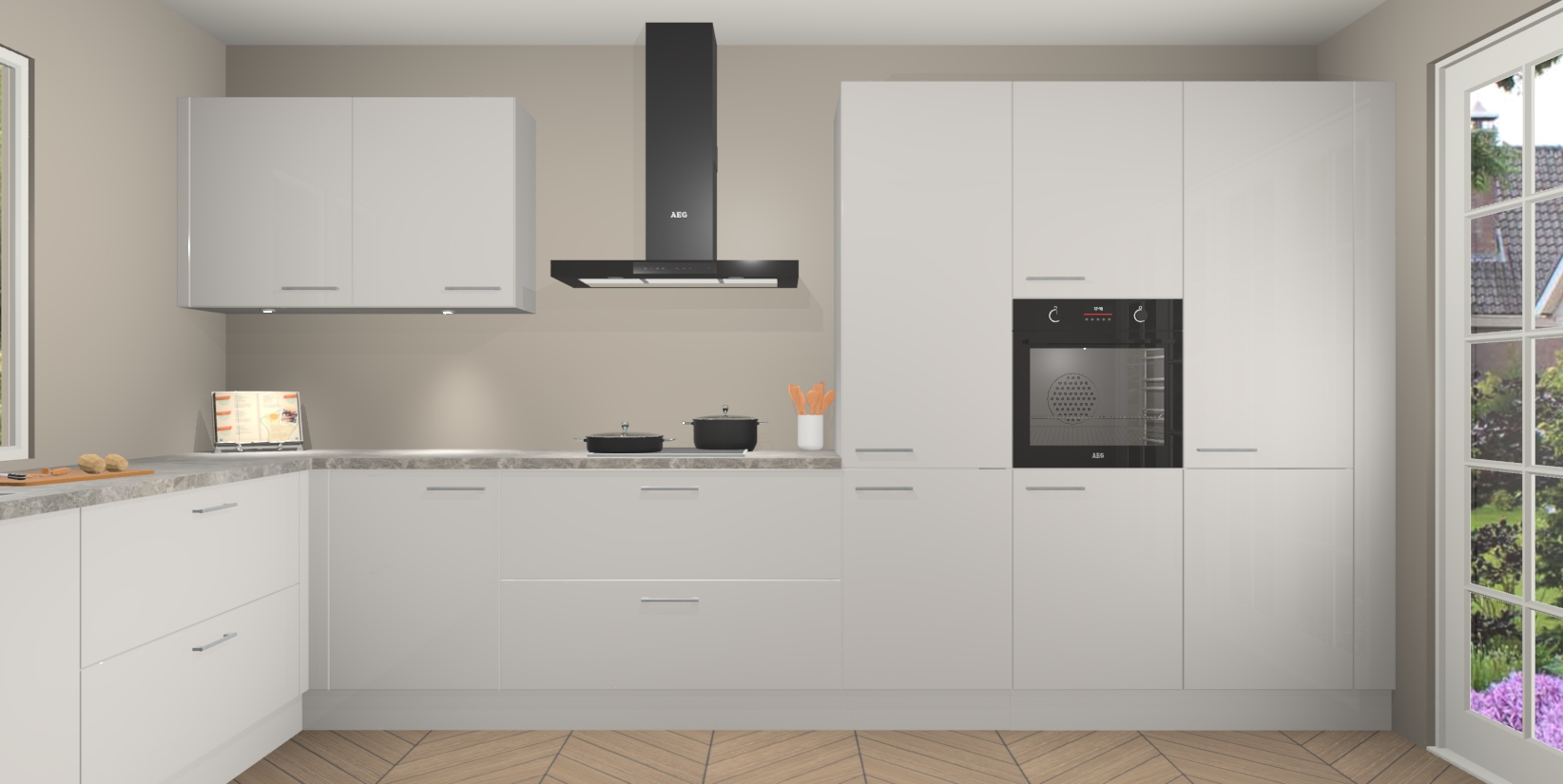 Heeft u nog apparatuur nodig? Geen probleem: de Zijdegrijze hoogglans keuken Debrecen bevat vijf ingebouwde apparaten - een oven, inductiekookplaat, afzuigkap, vaatwasser en koelkast - die gemakkelijk kunnen worden bijgewerkt naar AEG na bestelling. En als dat nog niet genoeg is; onze kasten worden pre-geassembleerd geleverd en zijn verkrijgbaar tegen een vastgeroeste lage prijs! U hoeft nooit meer te zoeken naar goede kwaliteit en service want onze producten hebben echt Duitse kwaliteit.