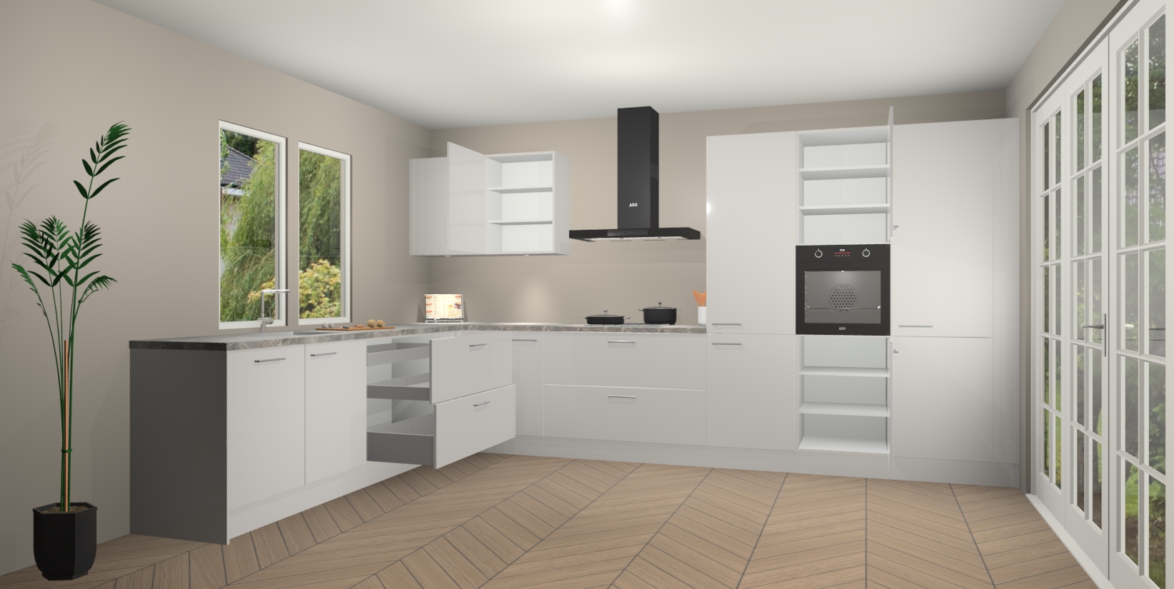 Inclusief plinten, stelpoten en werkblad