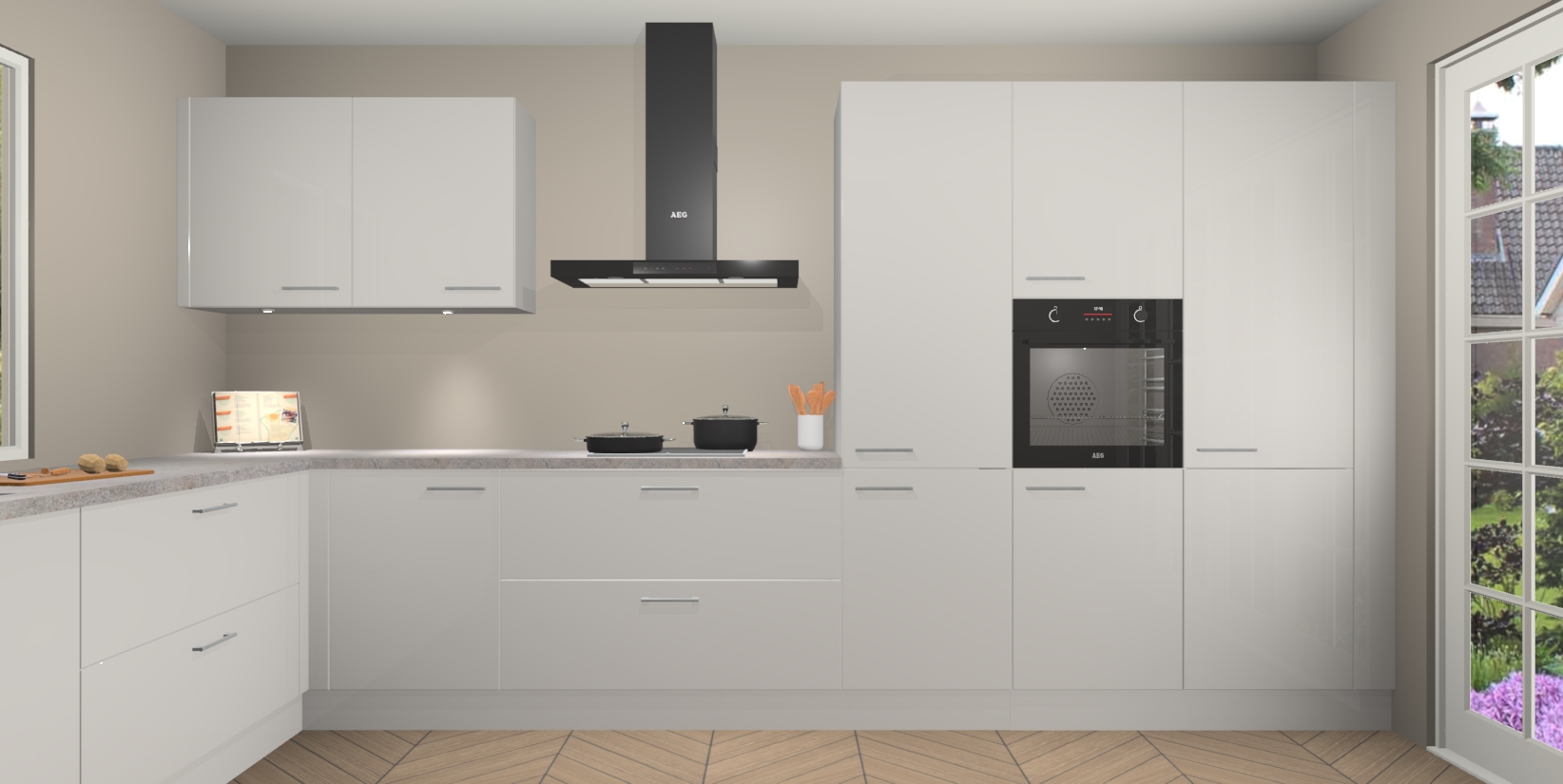 Heeft u nog apparatuur nodig? Geen probleem: de Zijdegrijze hoogglans keuken Debrecen bevat vijf ingebouwde apparaten - een oven, inductiekookplaat, afzuigkap, vaatwasser en koelkast - die gemakkelijk kunnen worden bijgewerkt naar AEG na bestelling. En als dat nog niet genoeg is; onze kasten worden pre-geassembleerd geleverd en zijn verkrijgbaar tegen een vastgeroeste lage prijs! U hoeft nooit meer te zoeken naar goede kwaliteit en service want onze producten hebben echt Duitse kwaliteit.