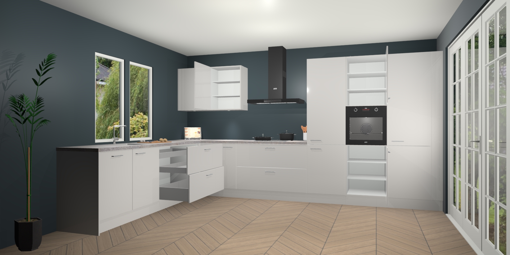 Inclusief plinten, stelpoten en werkblad
