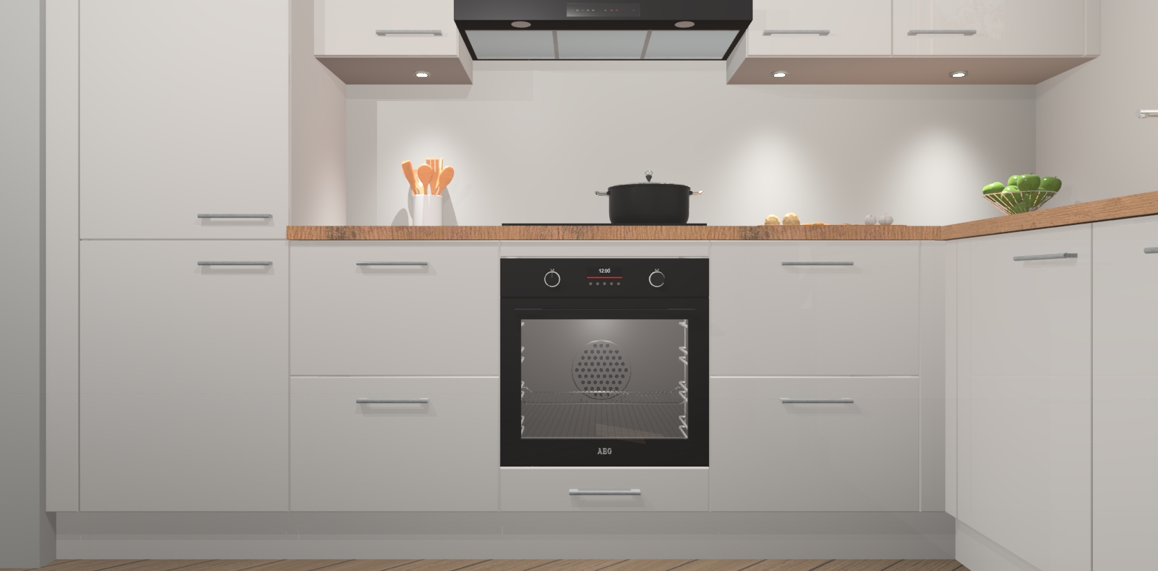De Zijdegrijze hoogglans keuken Geneve is uitgerust met 5 inbouwapparaten - een oven, inductiekookplaat, afzuigkap, vaatwasser en koelkast - voor al uw kook- en bewaarbehoeftes. U kunt deze apparaten desgewenst eenvoudig upgraden naar AEG of de oven omruilen voor een combimagnetron na het plaatsen van uw bestelling. En met de soft close deuren, voldoende opbergruimte en kasten die voorgemonteerd worden geleverd, bent u in een mum van tijd klaar om heerlijke maaltijden te bereiden!