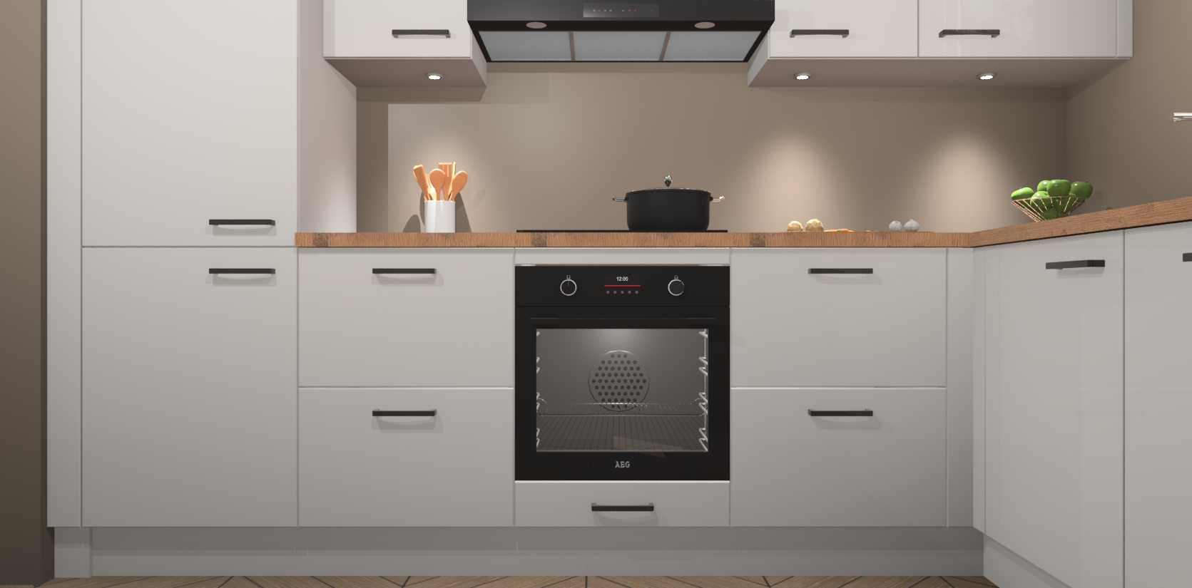 De Zijdegrijze hoogglans keuken Geneve is uitgerust met 5 inbouwapparaten - een oven, inductiekookplaat, afzuigkap, vaatwasser en koelkast - voor al uw kook- en bewaarbehoeftes. U kunt deze apparaten desgewenst eenvoudig upgraden naar AEG of de oven omruilen voor een combimagnetron na het plaatsen van uw bestelling. En met de soft close deuren, voldoende opbergruimte en kasten die voorgemonteerd worden geleverd, bent u in een mum van tijd klaar om heerlijke maaltijden te bereiden!