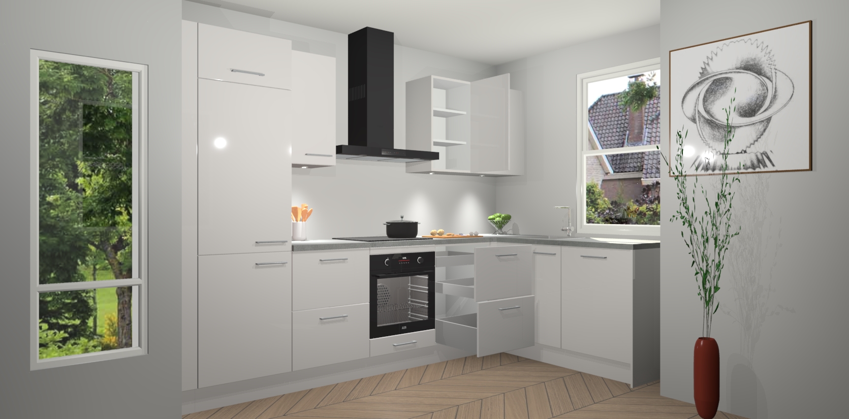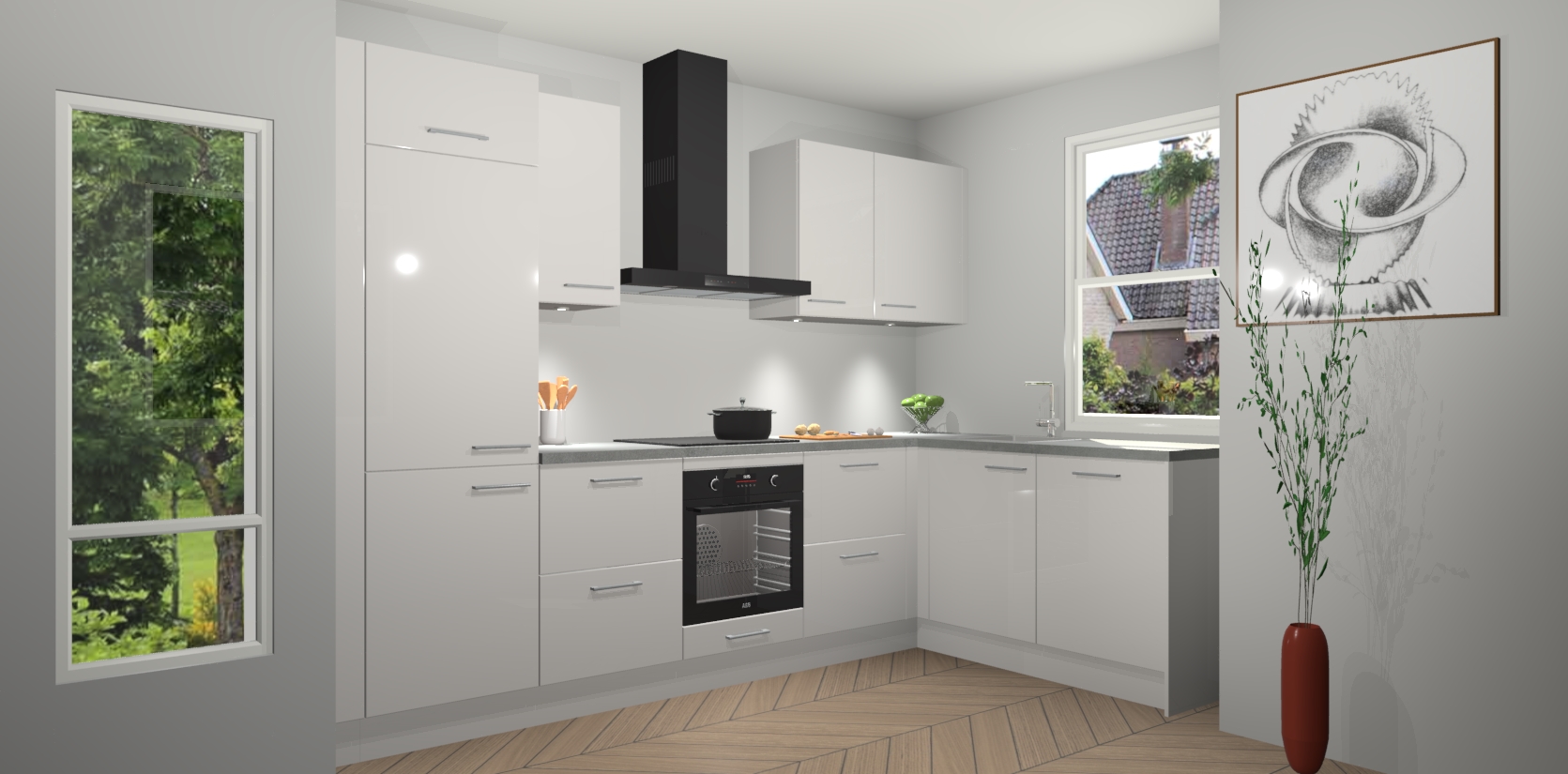De Zijdegrijze hoogglans keuken Geneve is uitgerust met 5 inbouwapparaten - een oven, inductiekookplaat, afzuigkap, vaatwasser en koelkast - voor al uw kook- en bewaarbehoeftes. U kunt deze apparaten desgewenst eenvoudig upgraden naar AEG of de oven omruilen voor een combimagnetron na het plaatsen van uw bestelling. En met de soft close deuren, voldoende opbergruimte en kasten die voorgemonteerd worden geleverd, bent u in een mum van tijd klaar om heerlijke maaltijden te bereiden!