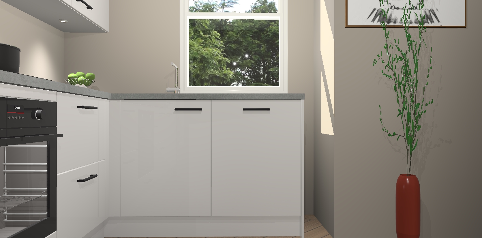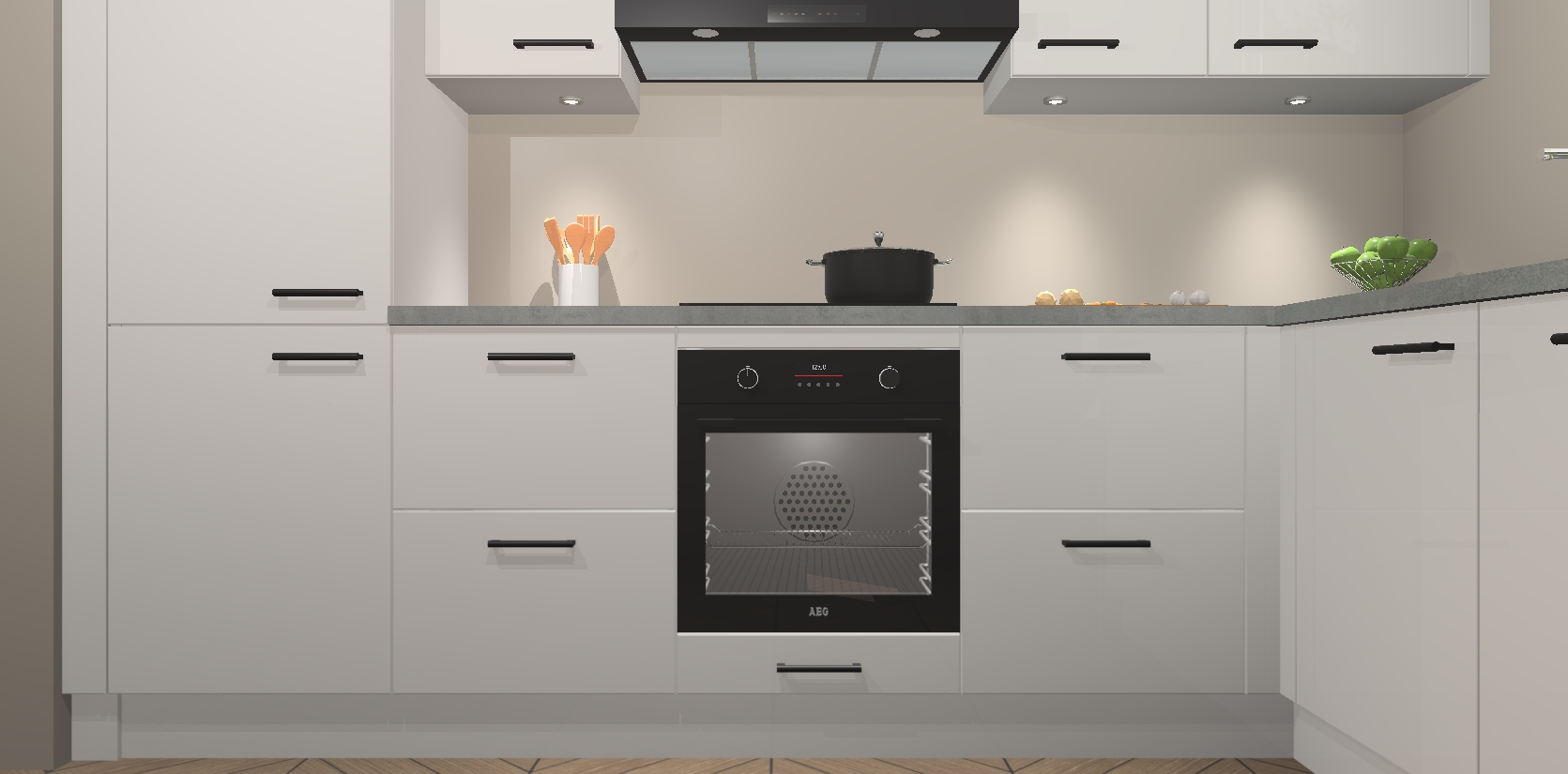 De Zijdegrijze hoogglans keuken Geneve is uitgerust met 5 inbouwapparaten - een oven, inductiekookplaat, afzuigkap, vaatwasser en koelkast - voor al uw kook- en bewaarbehoeftes. U kunt deze apparaten desgewenst eenvoudig upgraden naar AEG of de oven omruilen voor een combimagnetron na het plaatsen van uw bestelling. En met de soft close deuren, voldoende opbergruimte en kasten die voorgemonteerd worden geleverd, bent u in een mum van tijd klaar om heerlijke maaltijden te bereiden!