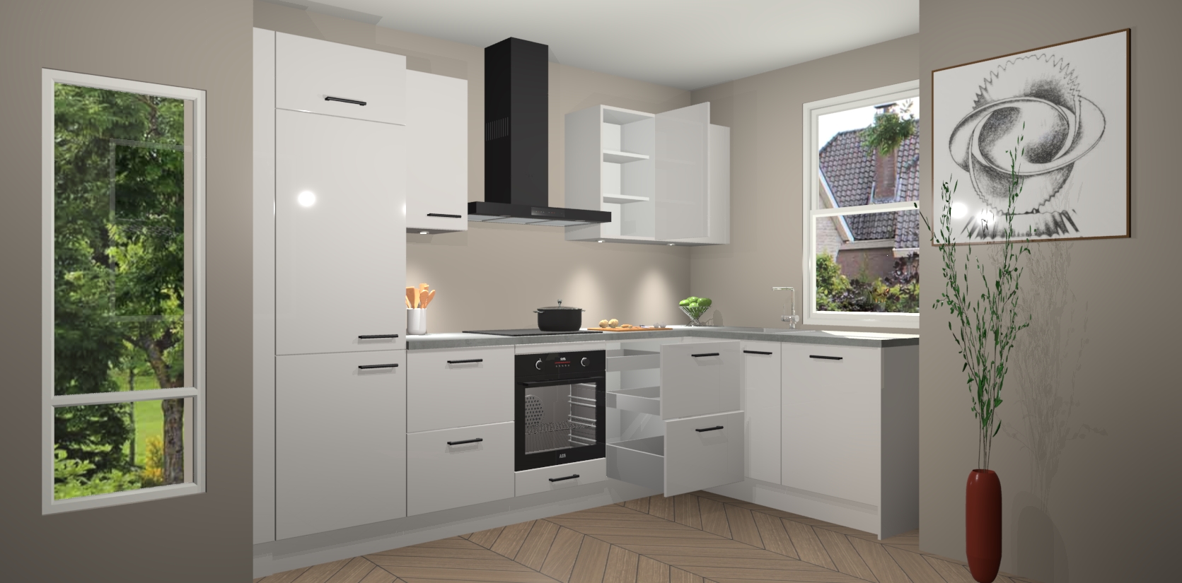 Bent u op zoek naar een moderne en tijdloze keuken die schoonheid in uw huis brengt? Zoek dan niet verder dan de Zijdegrijze hoogglans keuken Geneve - de perfecte keuken voor al uw wensen. Deze hoekkeuken biedt de hoogste Duitse kwaliteit voor een vaste lage prijs en is zeker een blikvanger in uw huis!