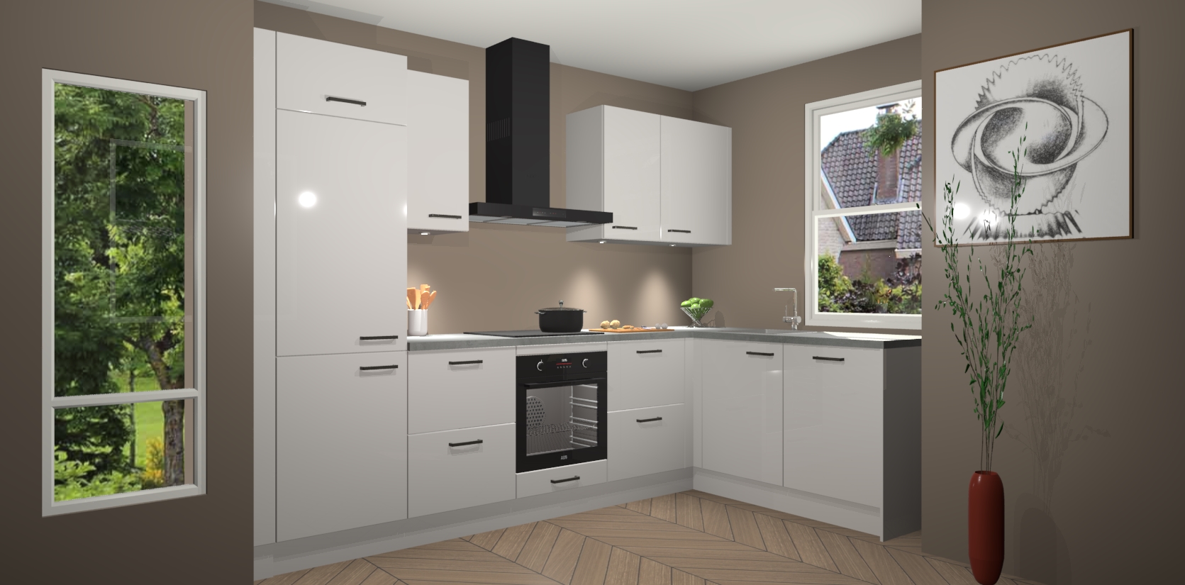 De Zijdegrijze hoogglans keuken Geneve is precies wat u nodig heeft als u op zoek bent naar modern design, versmolten met tijdloze schoonheid. De strakke afwerking voegt klasse toe terwijl het toch een uitnodigende sfeer behoudt; zeker om zowel gasten als uzelf te inspireren om in stijl te gaan koken! En nog beter, het zal uw budget niet breken - dus waarom wachten? Met de Zijdegrijze hoogglans keuken Geneve bent u verzekerd van kwaliteit zonder in te leveren op de prijs!
