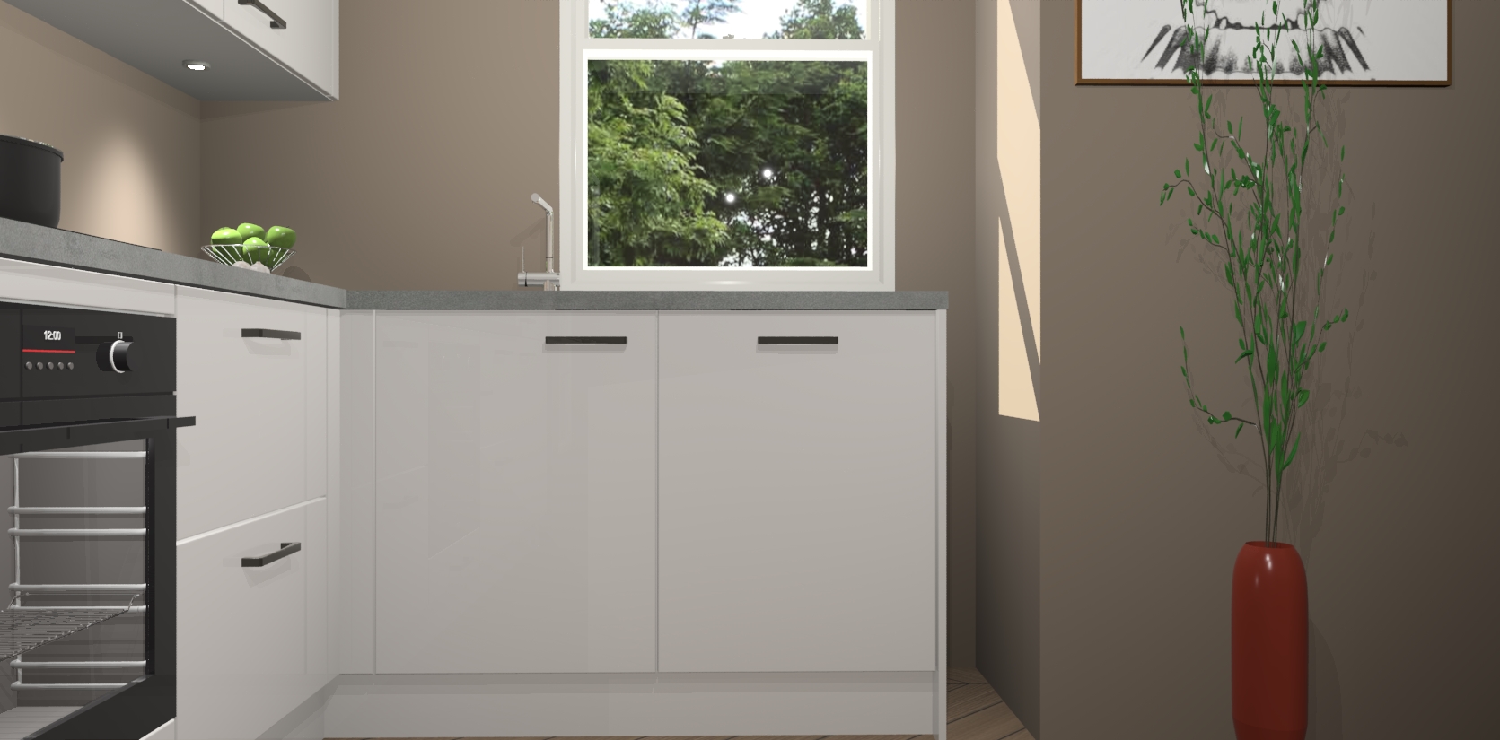 De Zijdegrijze hoogglans keuken Geneve is uitgerust met 5 inbouwapparaten - een oven, inductiekookplaat, afzuigkap, vaatwasser en koelkast - voor al uw kook- en bewaarbehoeftes. U kunt deze apparaten desgewenst eenvoudig upgraden naar AEG of de oven omruilen voor een combimagnetron na het plaatsen van uw bestelling. En met de soft close deuren, voldoende opbergruimte en kasten die voorgemonteerd worden geleverd, bent u in een mum van tijd klaar om heerlijke maaltijden te bereiden!