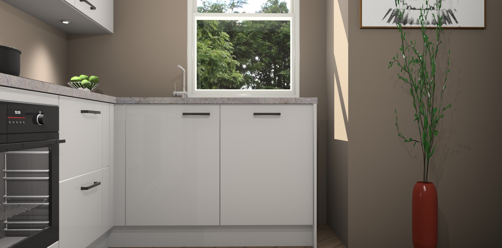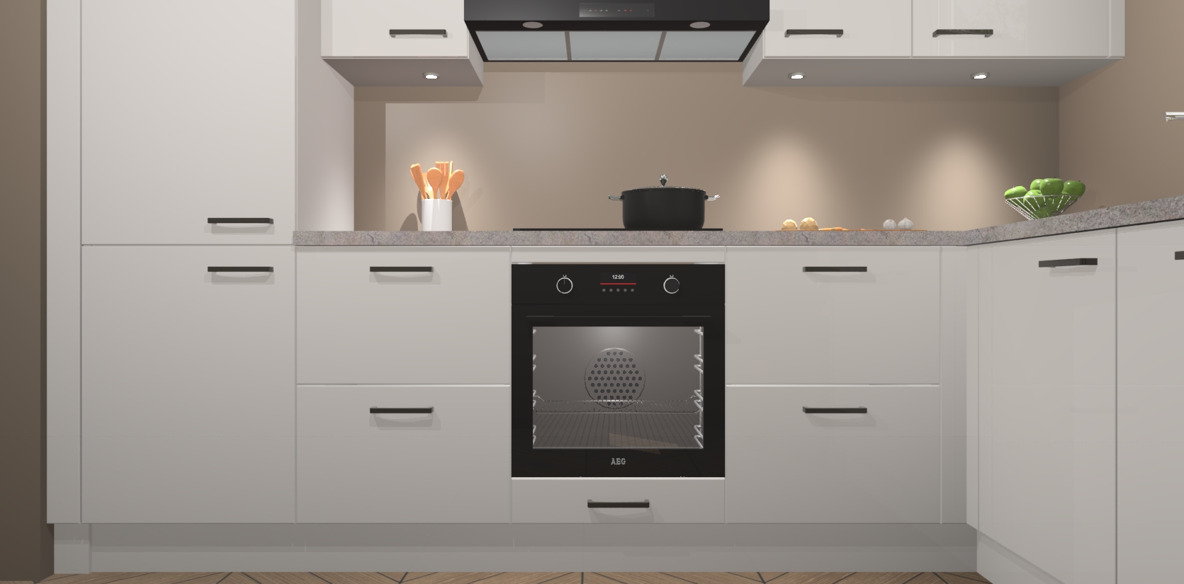 De Zijdegrijze hoogglans keuken Geneve is uitgerust met 5 inbouwapparaten - een oven, inductiekookplaat, afzuigkap, vaatwasser en koelkast - voor al uw kook- en bewaarbehoeftes. U kunt deze apparaten desgewenst eenvoudig upgraden naar AEG of de oven omruilen voor een combimagnetron na het plaatsen van uw bestelling. En met de soft close deuren, voldoende opbergruimte en kasten die voorgemonteerd worden geleverd, bent u in een mum van tijd klaar om heerlijke maaltijden te bereiden!
