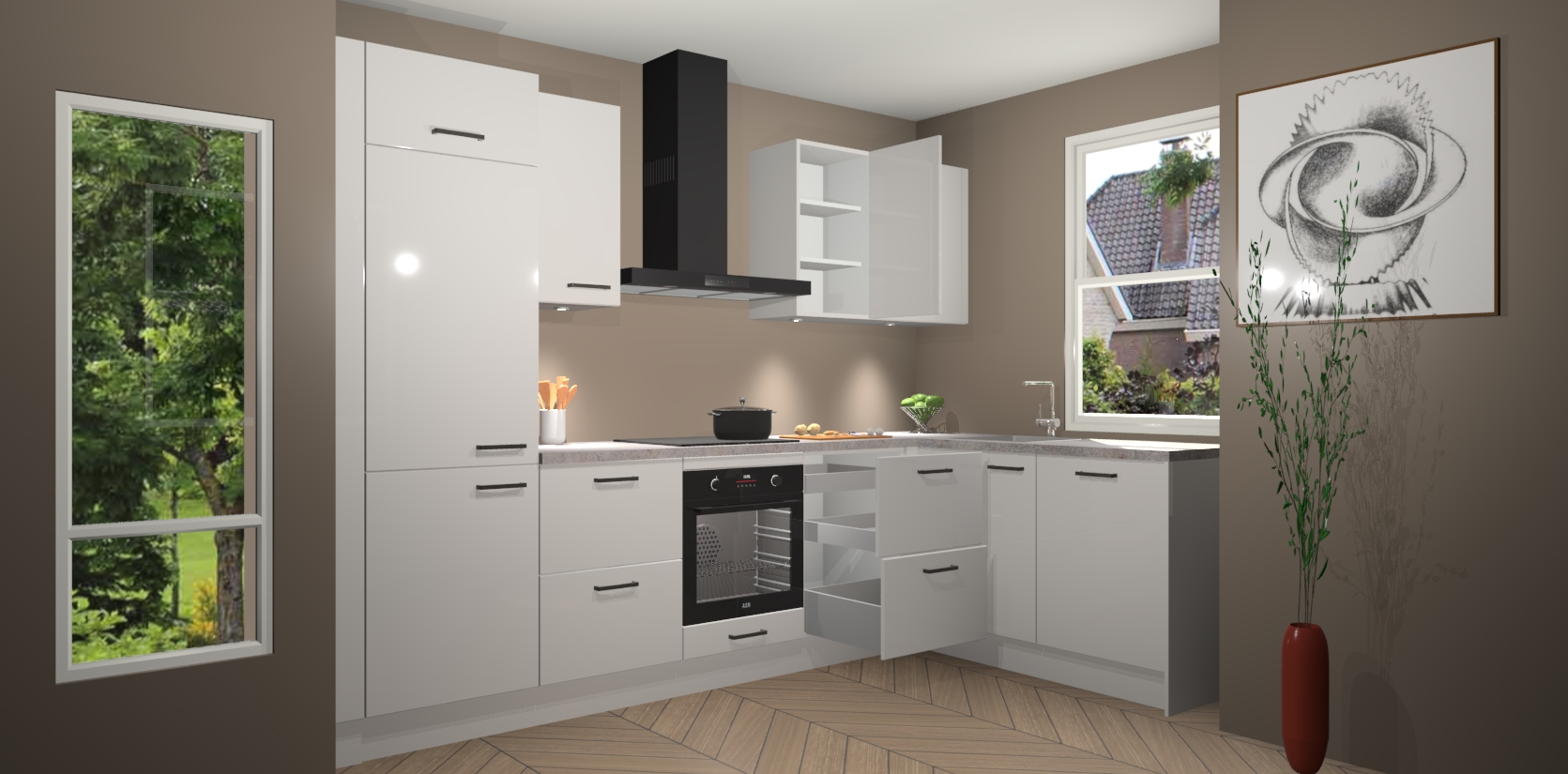 Bent u op zoek naar een moderne en tijdloze keuken die schoonheid in uw huis brengt? Zoek dan niet verder dan de Zijdegrijze hoogglans keuken Geneve - de perfecte keuken voor al uw wensen. Deze hoekkeuken biedt de hoogste Duitse kwaliteit voor een vaste lage prijs en is zeker een blikvanger in uw huis!