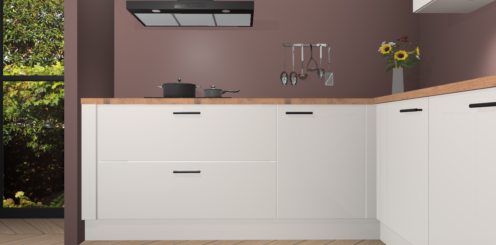 Inclusief plinten, stelpoten en werkblad