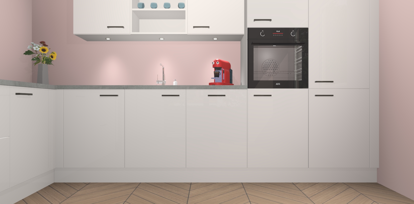 De Zijdegrijze hoogglans keuken Gotenburg is zo ontworpen dat u alle mogelijke vormen van opslagruimte kunt genieten. Bovendien heeft u meteen toegang tot vijf ingebouwde apparaten: een oven, inductiekookplaat, afzuigkap, vaatwasser en koelkast. Gewoon upgraden naar AEG na bestelling? Dit kan heel gemakkelijk worden geregeld. De deuren sluiten zacht dankzij zachtsluitende scharnieren en ze houden warmte vast terwijl ze uitzonderlijk stil blijven wanneer ze worden geopend of gesloten.