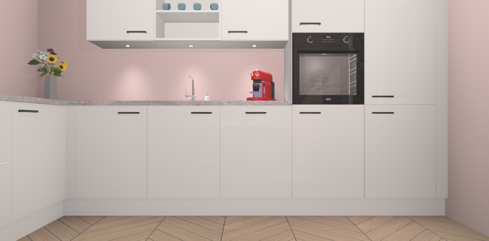 De Zijdegrijze hoogglans keuken Gotenburg is zo ontworpen dat u alle mogelijke vormen van opslagruimte kunt genieten. Bovendien heeft u meteen toegang tot vijf ingebouwde apparaten: een oven, inductiekookplaat, afzuigkap, vaatwasser en koelkast. Gewoon upgraden naar AEG na bestelling? Dit kan heel gemakkelijk worden geregeld. De deuren sluiten zacht dankzij zachtsluitende scharnieren en ze houden warmte vast terwijl ze uitzonderlijk stil blijven wanneer ze worden geopend of gesloten.